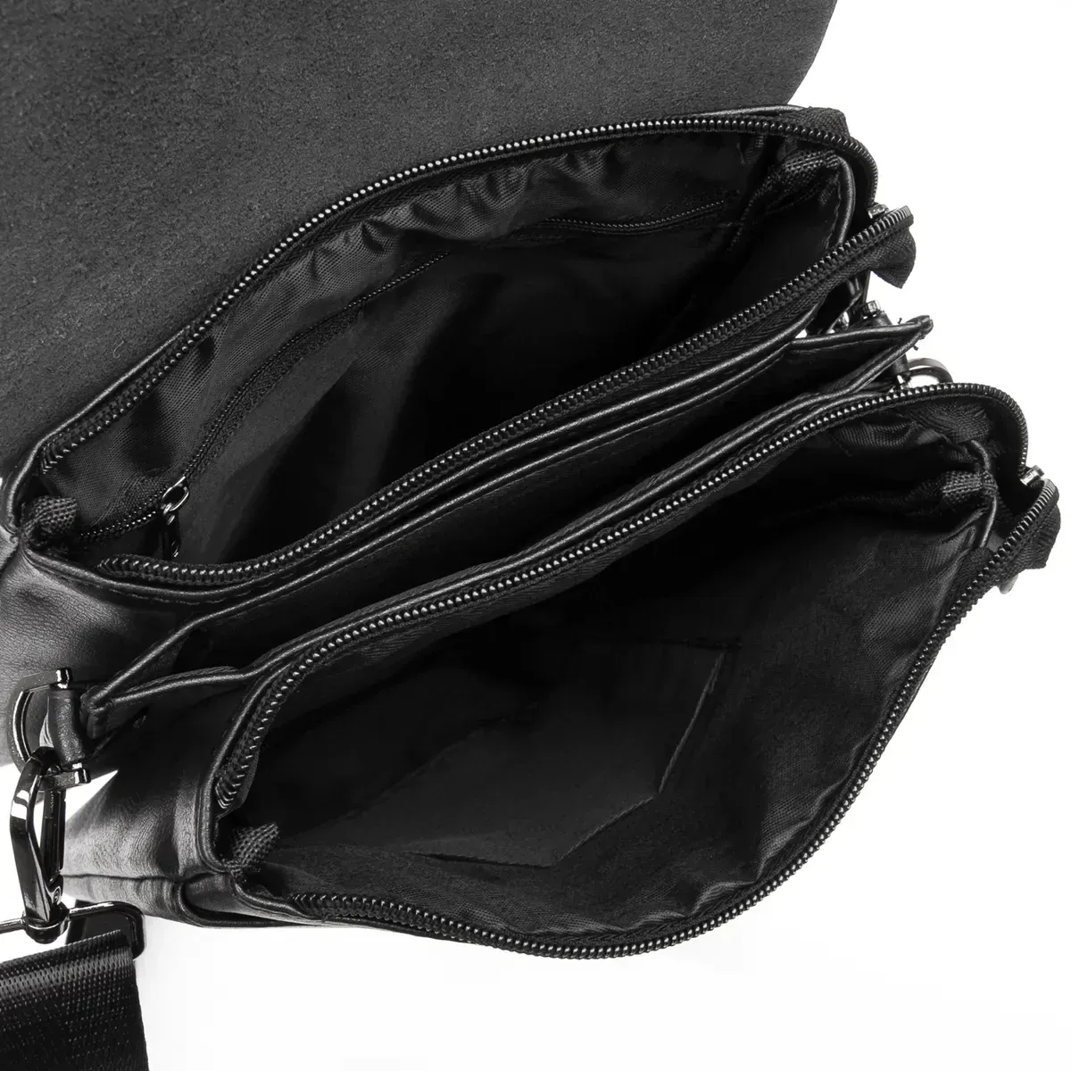 Мужская сумка - планшет Dr.Bond. Клапан изготовлен из натуральной плотной кожи, фиксируется на два скрытых магнита. Под клапаном находятся три отделения: боковые дополнительно закрываются на молнию, и открытое центральное. Отделения разделены карманами-перегородками. На фасаде под клапаном расположен большой открытый карман. На обратной стороне сумки есть карман на молнии.