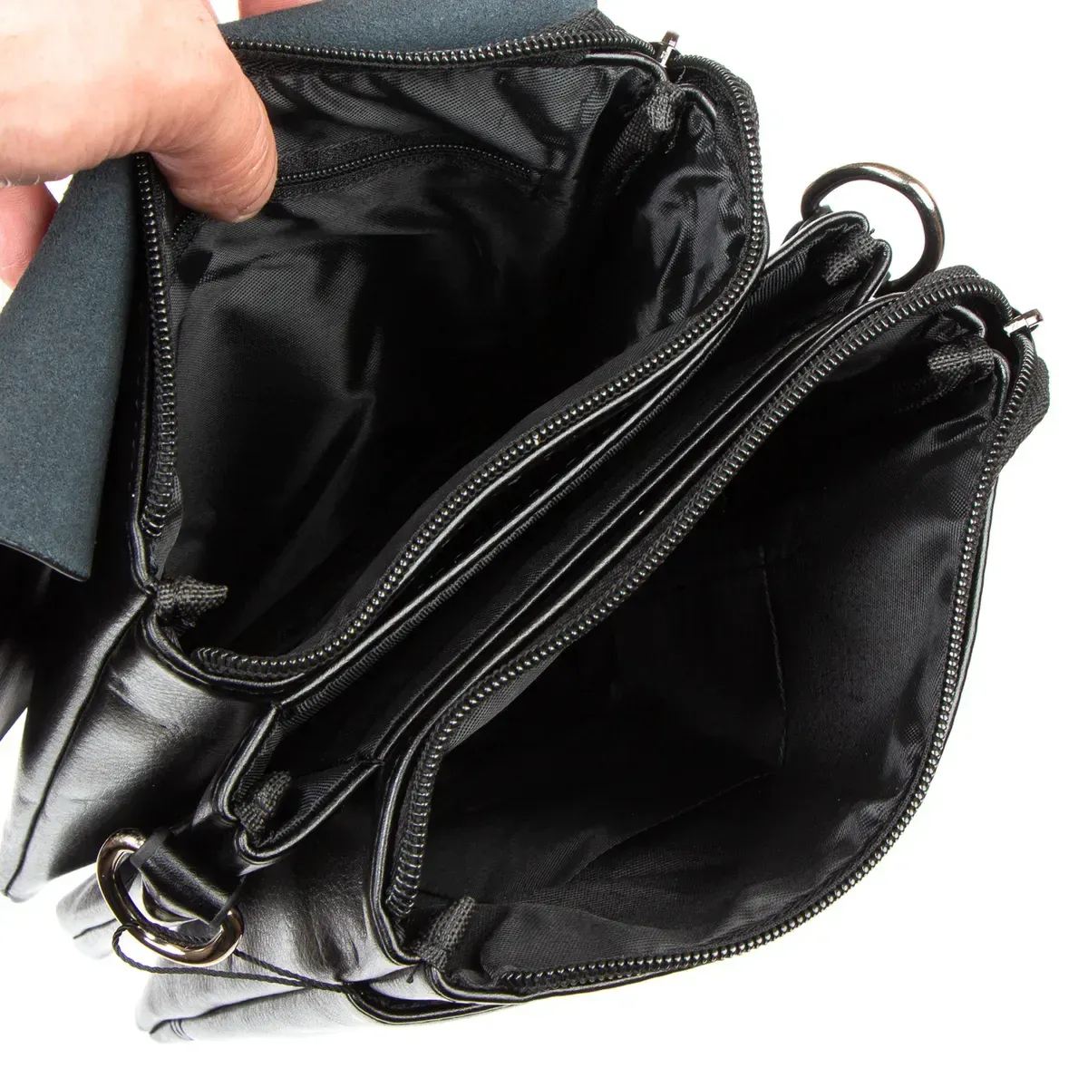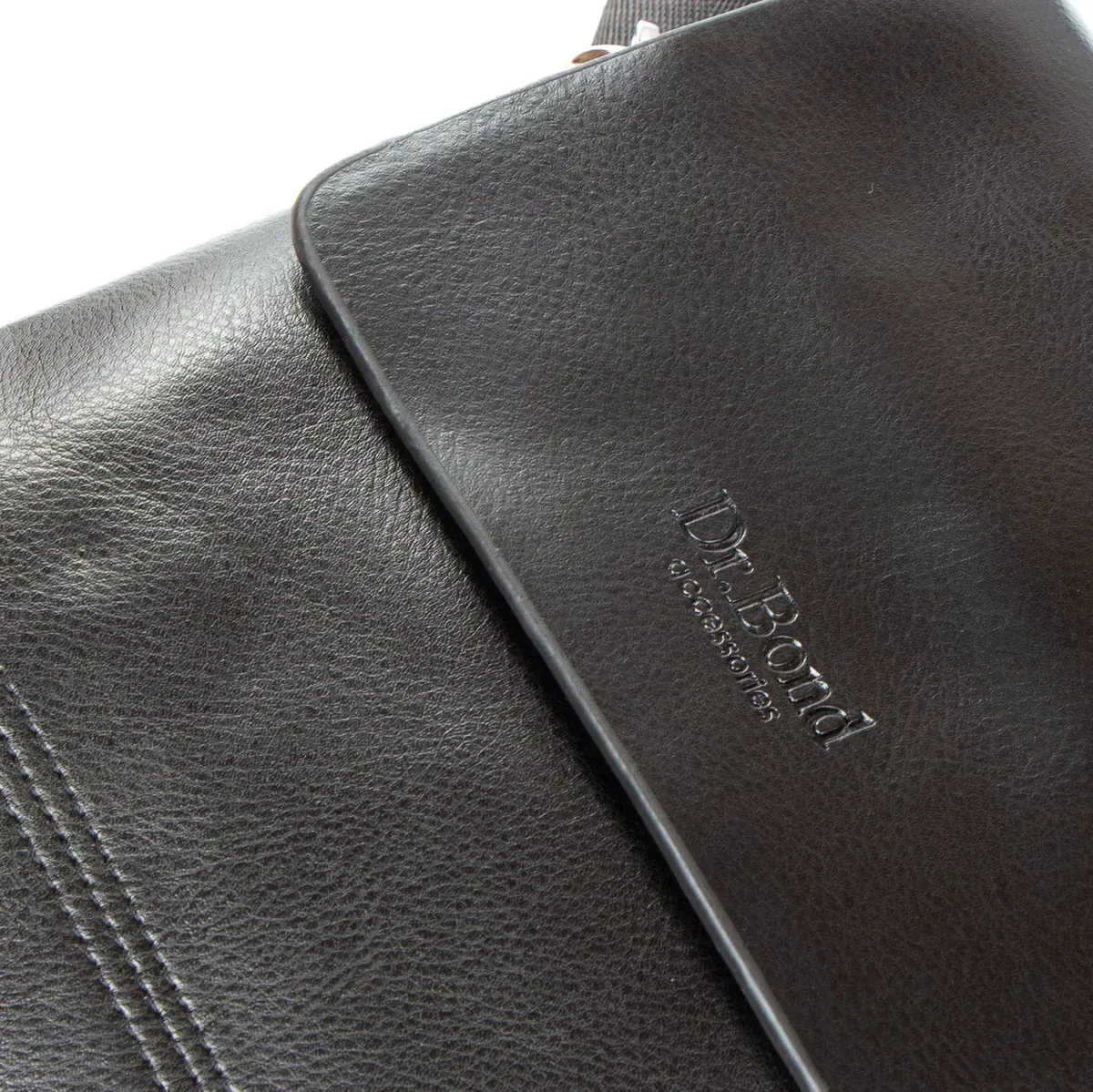Мужская сумка - планшет Dr.Bond. Клапан изготовлен из натуральной плотной кожи, фиксируется на два скрытых магнита. Под клапаном находятся три отделения: центральное - открытое, а боковые закрываются на молнии. Внутри боковых отделений есть карман на молнии и открытый карман для смартфона. На фасаде находится большой открытый карман. На обратной стороне сумки есть карман на молнии.