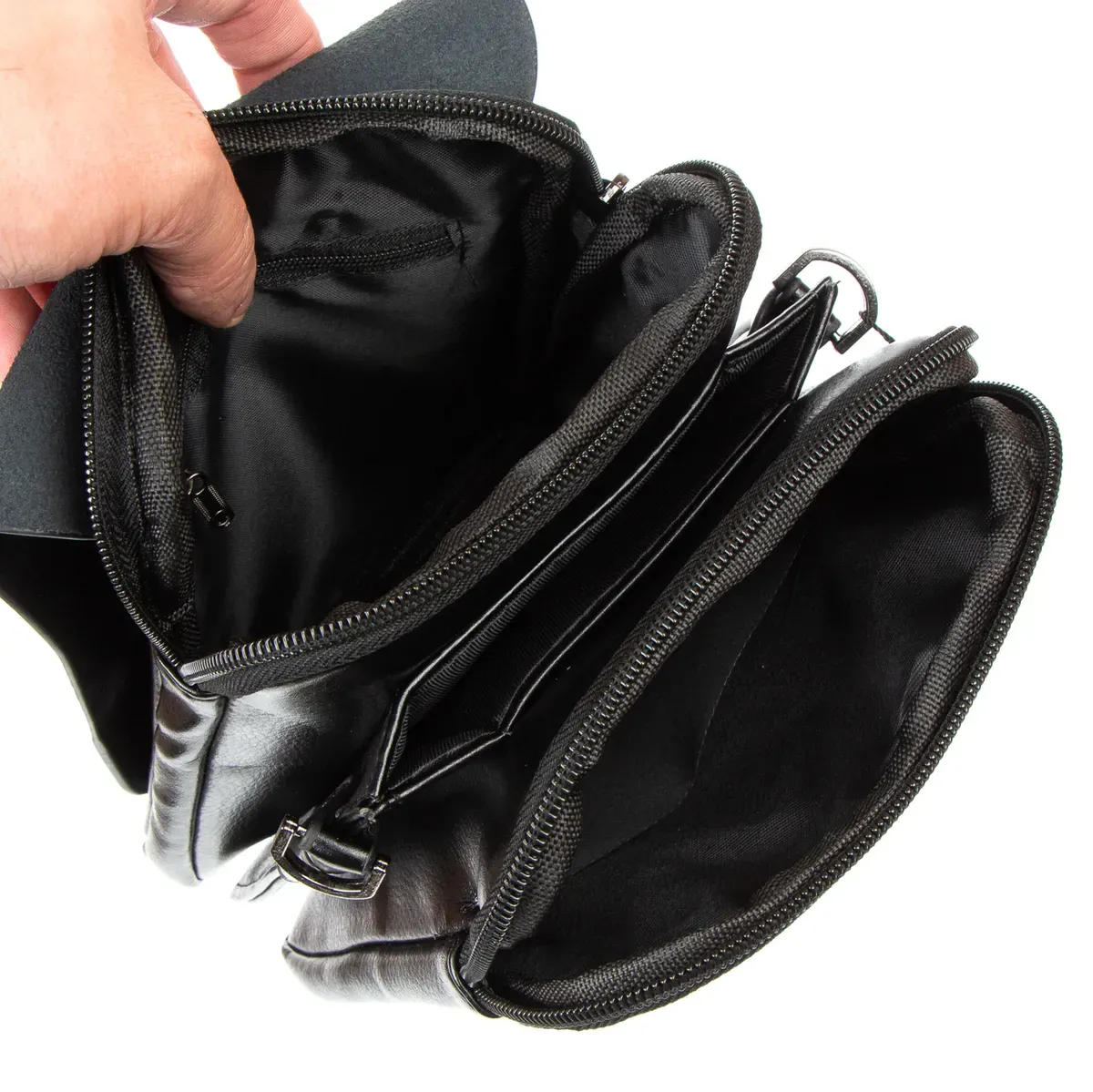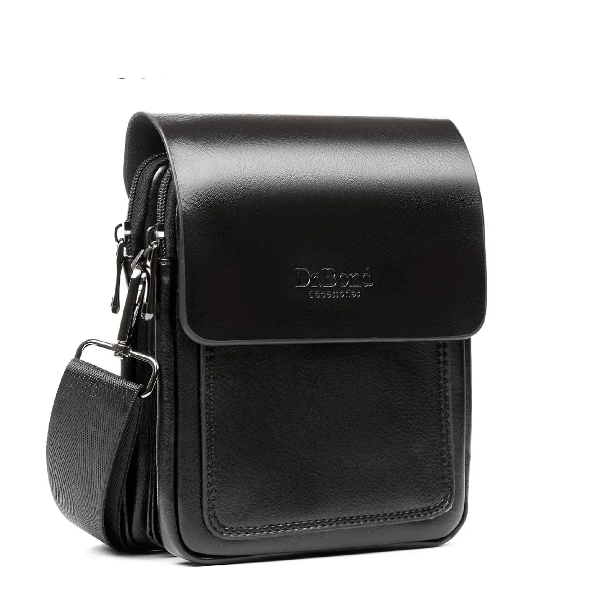 Мужская сумка - планшет Dr.Bond. Клапан изготовлен из натуральной плотной кожи, фиксируется на два скрытых магнита. Под клапаном находятся три отделения: центральное - открытое, а боковые закрываются на молнии. Внутри боковых отделений есть карман на молнии и открытый карман для смартфона. На фасаде находится большой открытый карман. На обратной стороне сумки есть карман на молнии.