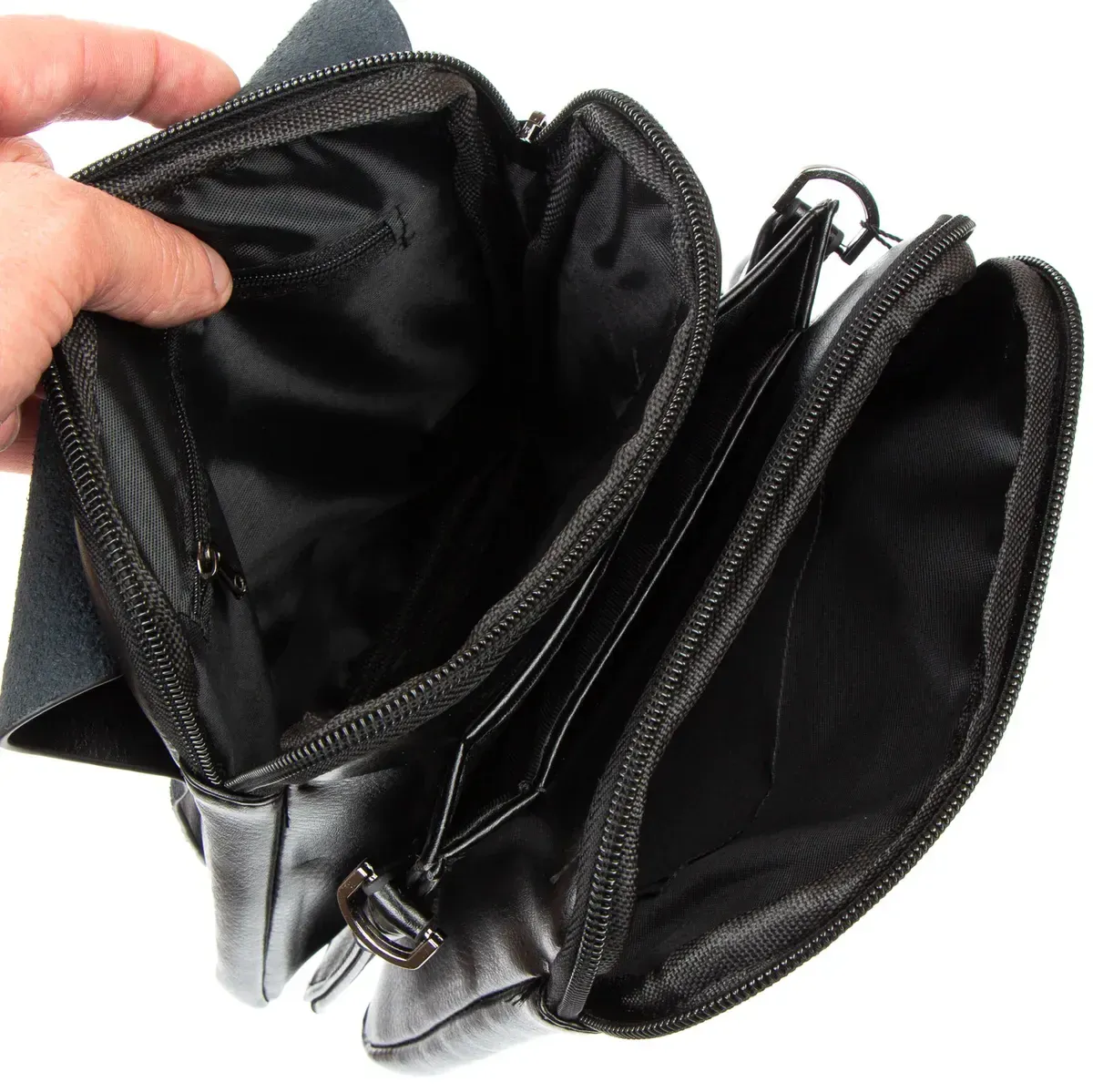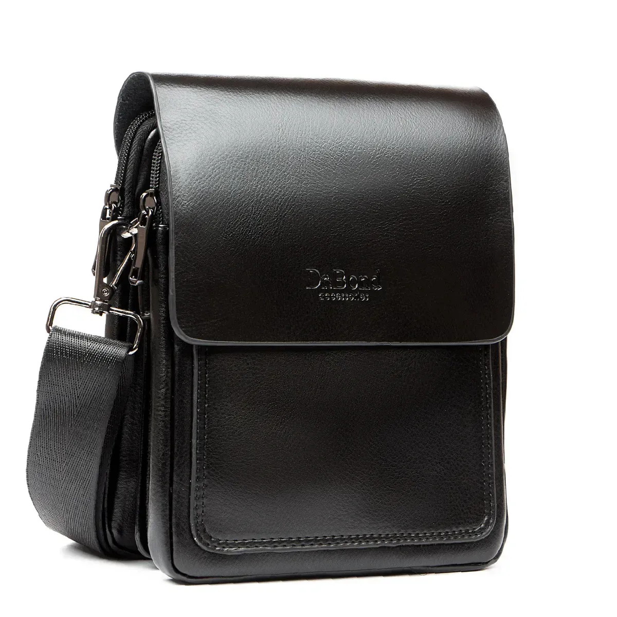 Мужская сумка - планшет Dr.Bond. Клапан изготовлен из натуральной плотной кожи, фиксируется на два скрытых магнита. Под клапаном находятся три отделения: центральное - открытое, а боковые закрываются на молнии. Внутри боковых отделений есть карман на молнии и открытый карман для смартфона. На фасаде находится большой открытый карман. На обратной стороне сумки есть карман на молнии.