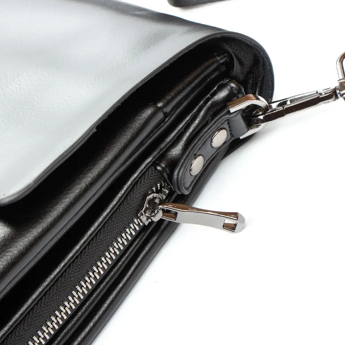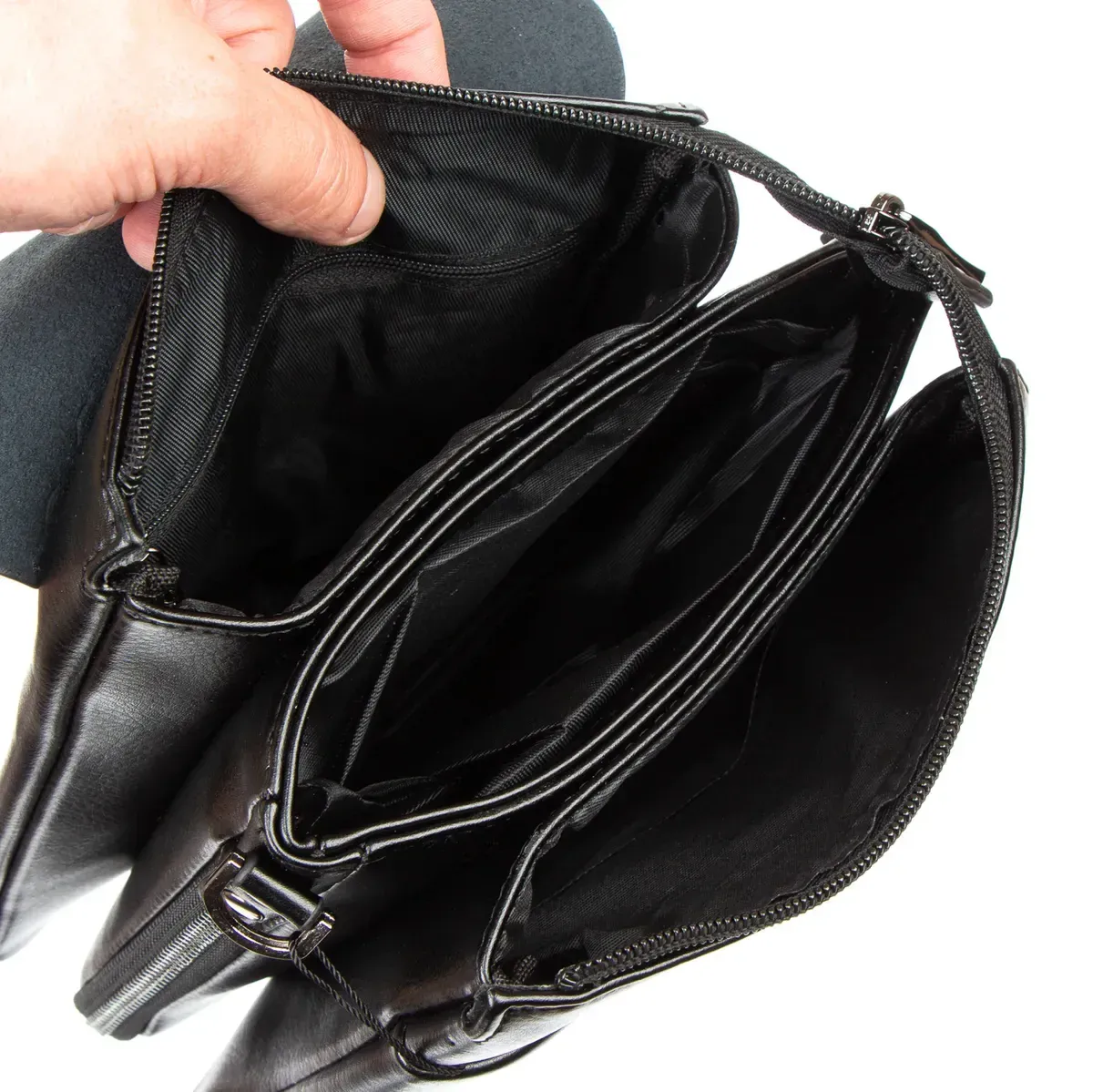 Мужская сумка - планшет Dr.Bond. Клапан изготовлен из натуральной плотной кожи, фиксируется на два скрытых магнита. Под клапаном дополнительно закрывается на молнию. Внутри размещены три отделения (среднее с молнией расширения), боковой карман на молнии и открытый карман для смартфона. На фасаде находится открытый карман. На обратной стороне сумки есть карман на молнии.