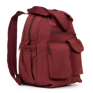 Два отделения, закрываются на молнии. В основном отделении есть боковой карман на молнии и открытый карман.