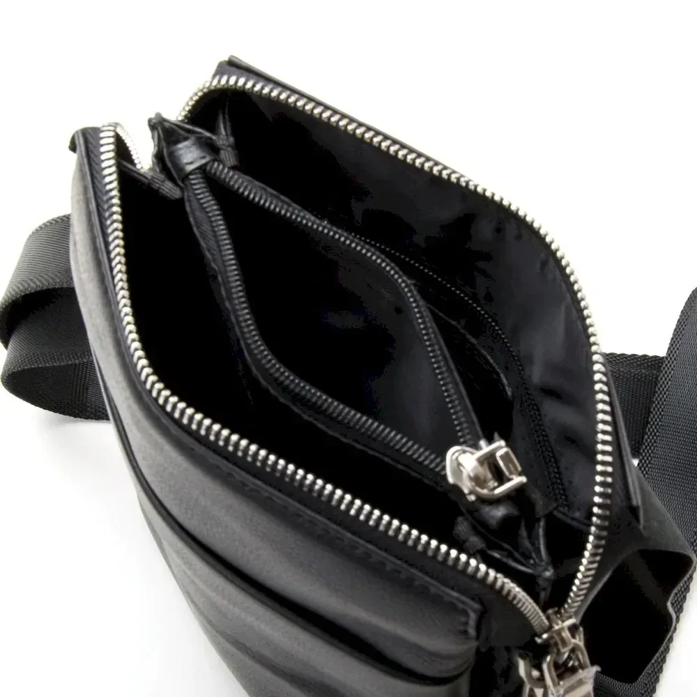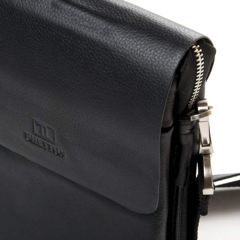 Мужская кожаная сумка-планшет Bretton. Под клапаном находятся три отделения, которые дополнительно закрываются общей молнией. Внутри есть боковой карман на молнии и открытый карман. На фасаде под клапаном есть открытый карман. На обратной стороне сумки находится карман на молнии. В комплекте есть регулируемый плечевой ремень.