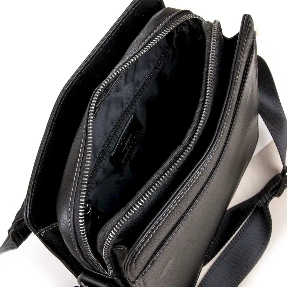 Мужская большая кожаная сумка-планшет Bretton. Под клапаном находятся три отделения, центральное дополнительно закрывается на молнию. Внутри основного отделения есть боковой открытый карман и карман на молнии. На фасаде сумки есть плоский открытый карман, а на обратной стороне расположен карман на молнии. Регулируемый плечевой ремень.