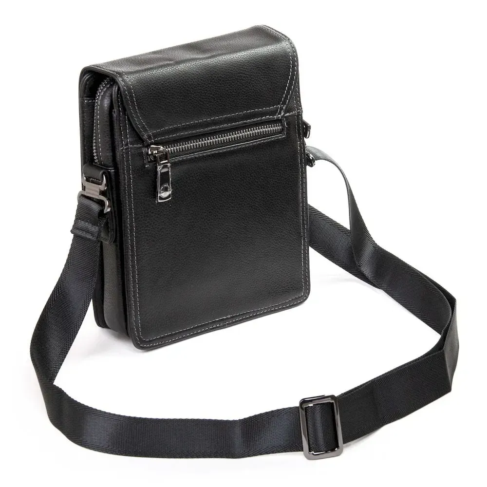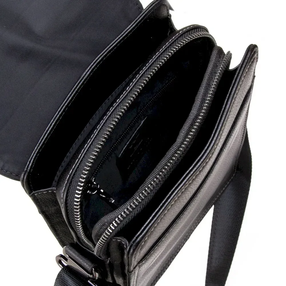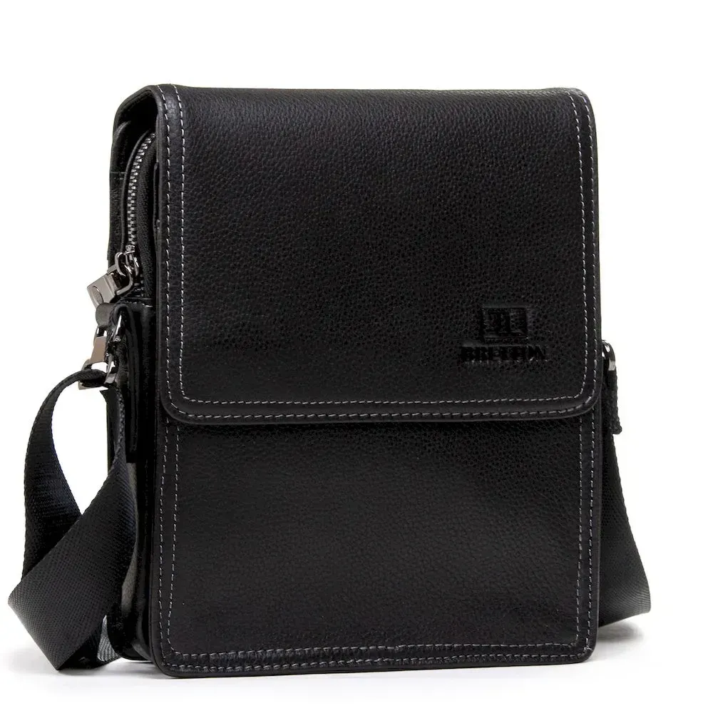 Мужская компактная кожаная сумка-планшет Bretton. Под клапаном находятся три отделения, центральное дополнительно закрывается на молнию. Внутри основного отделения есть боковой открытый карман и карман на молнии. На фасаде сумки есть плоский открытый карман, а на обратной стороне расположен карман на молнии. Регулируемый плечевой ремень.