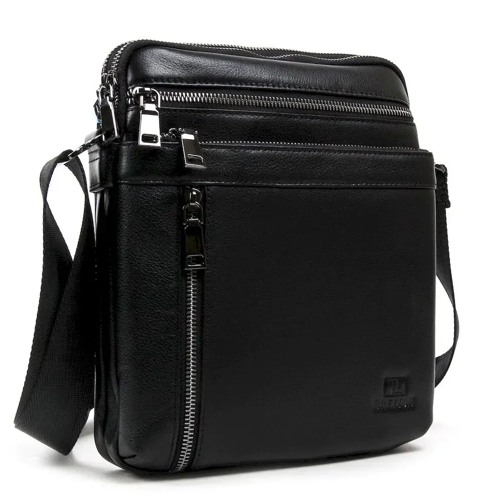 Мужская кожаная сумка-планшет Bretton. Изготовлена из натуральной мягкой кожи. Два отделения, в которых есть открытый карман и боковой карман на молнии. На фасаде сумки есть три кармана на молнии. На обратной стороне расположен карман на молнии. Регулируемый плечевой ремень.
