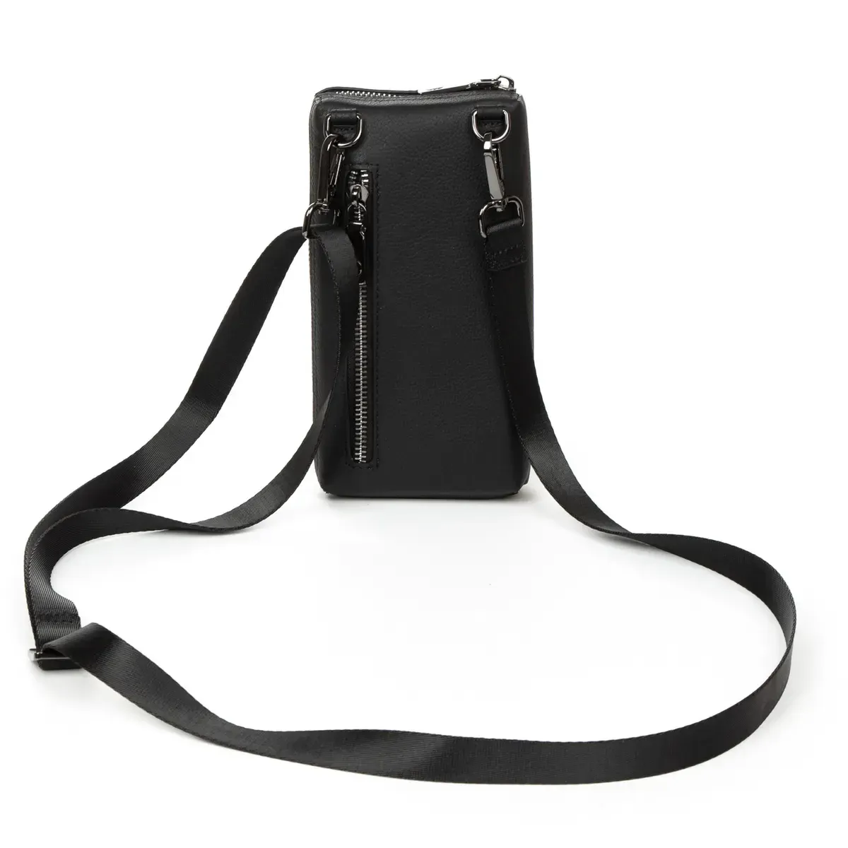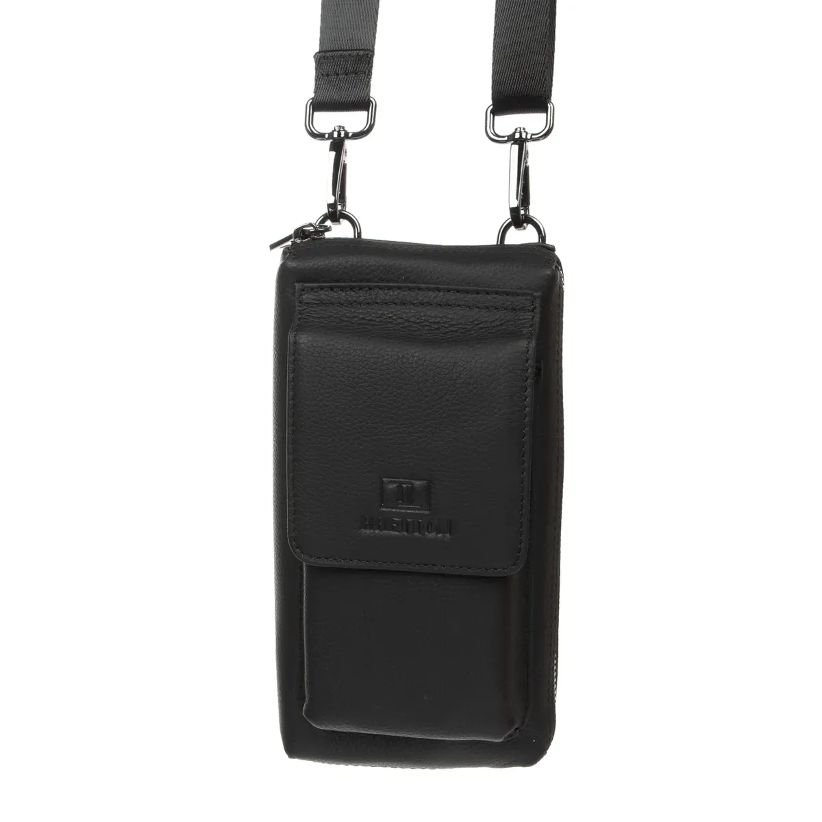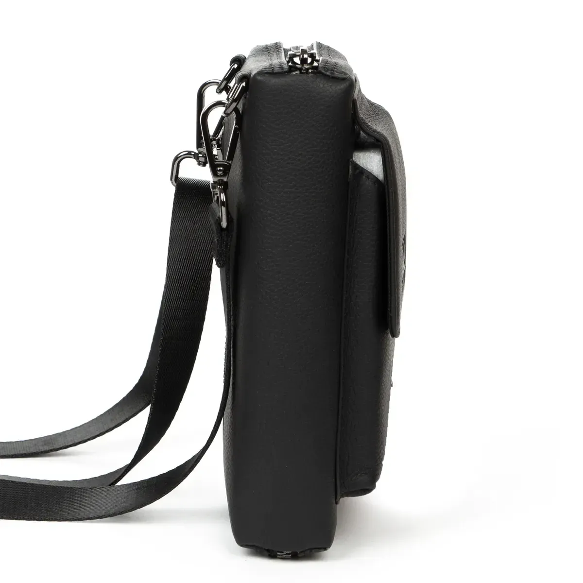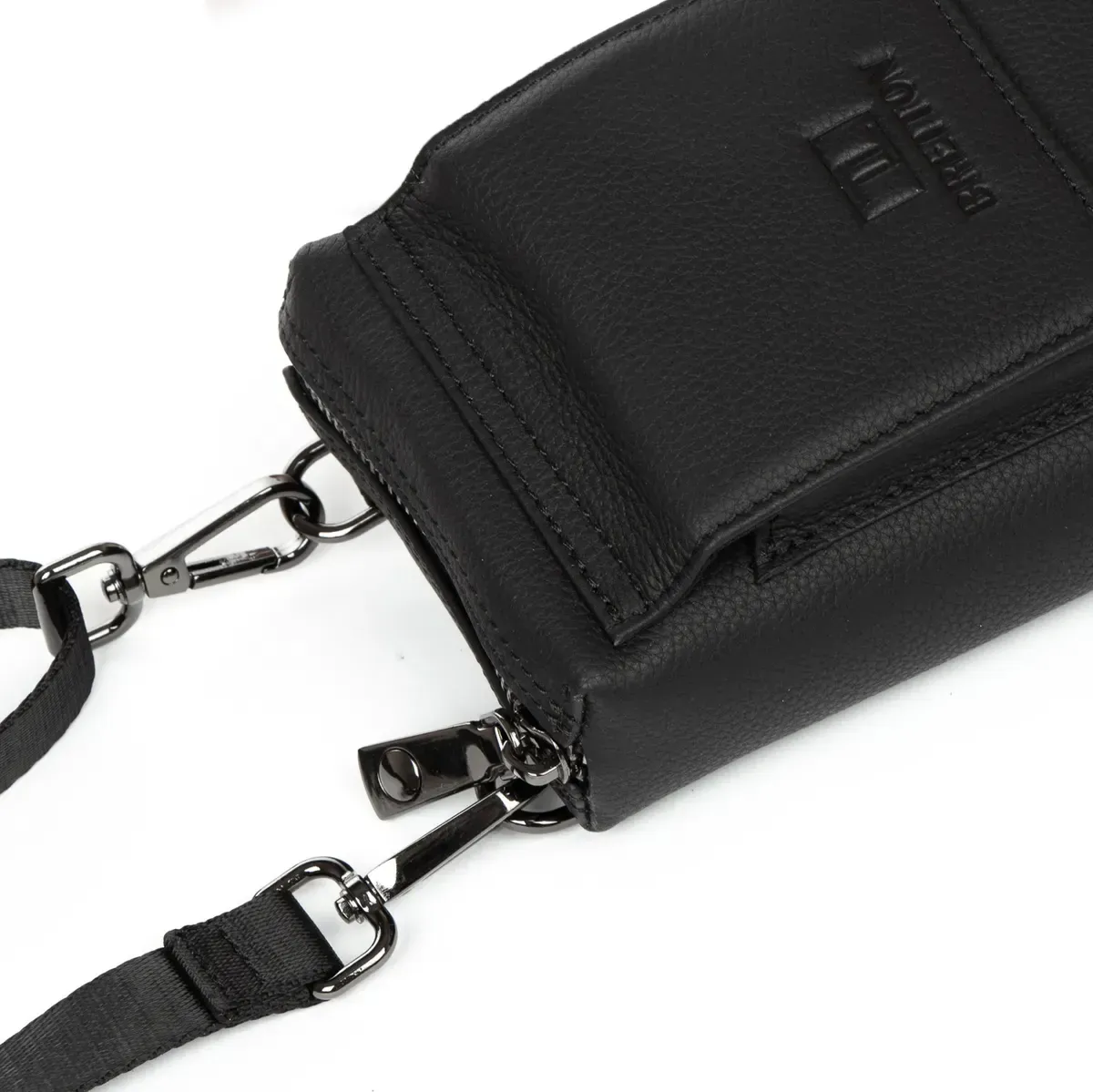 Мужская кожаная сумочка Bretton. Изготовлена из мягкой натуральной кожи. Можно носить на плече или без ремня в руке. Основное отделение закрывается на молнию. Внутри есть карман-перегородка на молнии, боковой открытый карман и карман на молнии. На фасаде находится карман для смартфона, закрывается клапаном на магните. На обратной стороне сумки расположен карман на молнии.