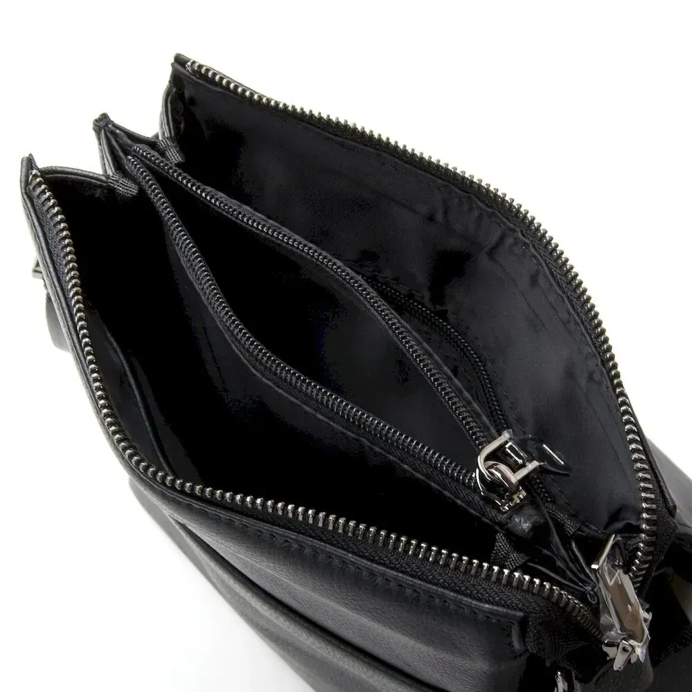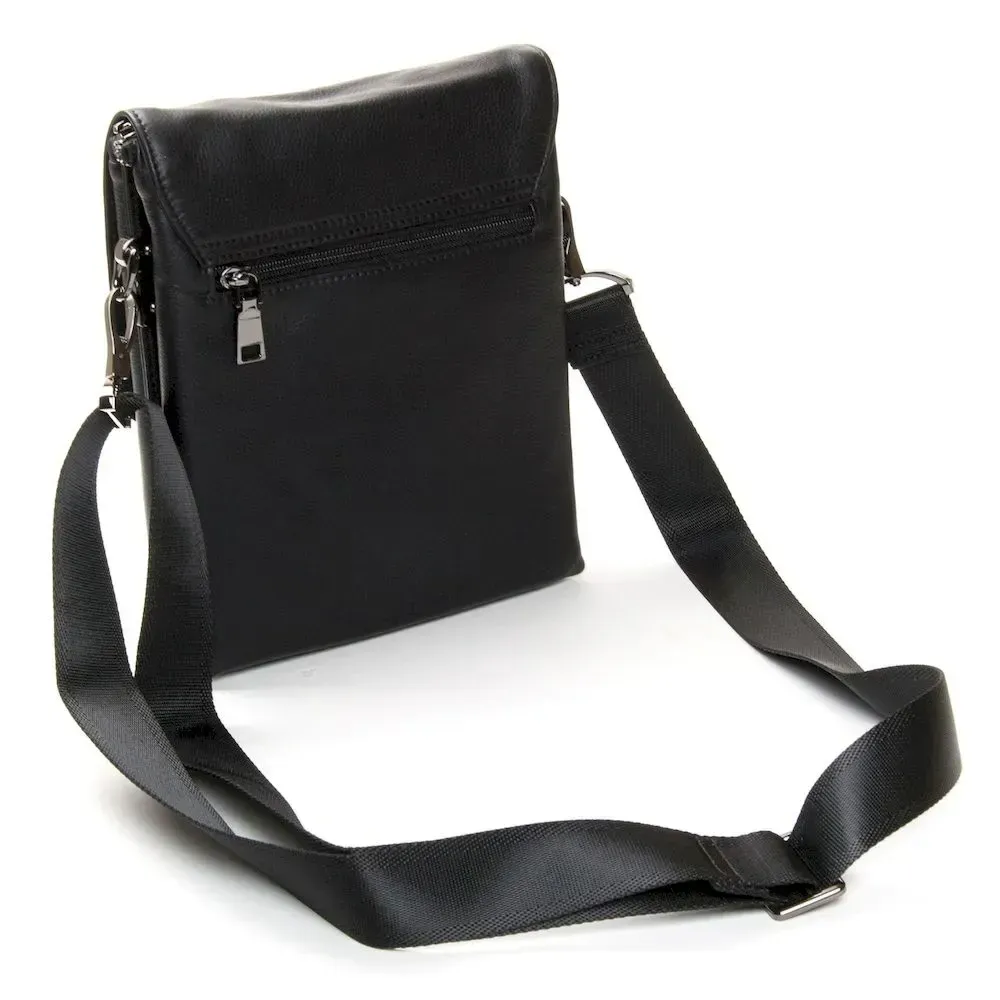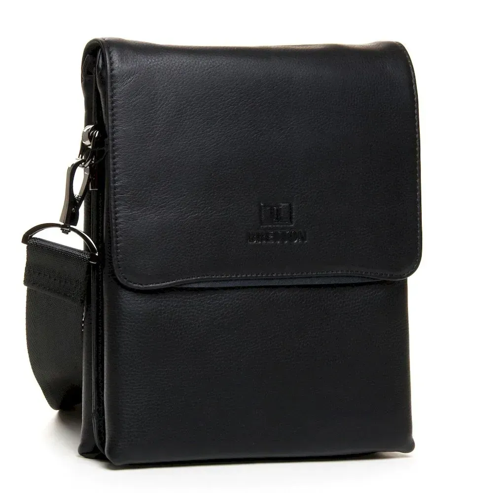 Мужская кожаная сумка-планшет Bretton. Под клапаном находятся три отделения, которые закрываются на общую молнию. Внутри есть боковой открытый карман и карман на молнии. На фасаде под клапаном есть открытый карман. На обратной стороне сумки находится карман на молнии. В комплекте регулируемый плечевой ремень.