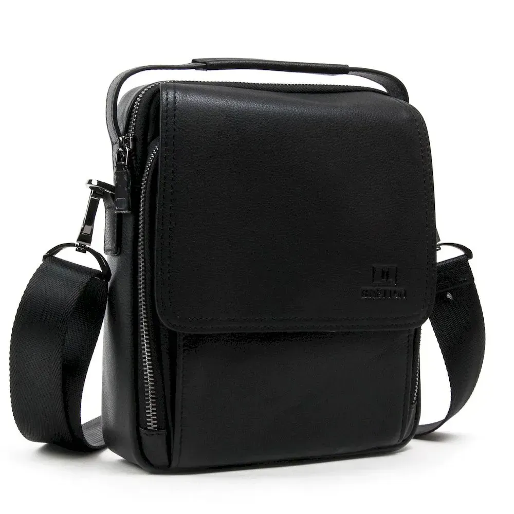 Мужская кожаная сумка-планшет Bretton. Изготовлена из натуральной мягкой кожи. Одно отделение, закрывается на молнию. Внутри есть открытый карман и боковой карман на молнии. На фасаде сумки есть открытый карман и карман на молнии под общим клапаном, а на обратной стороне расположен карман на молнии. Регулируемый плечевой ремень в комплекте.