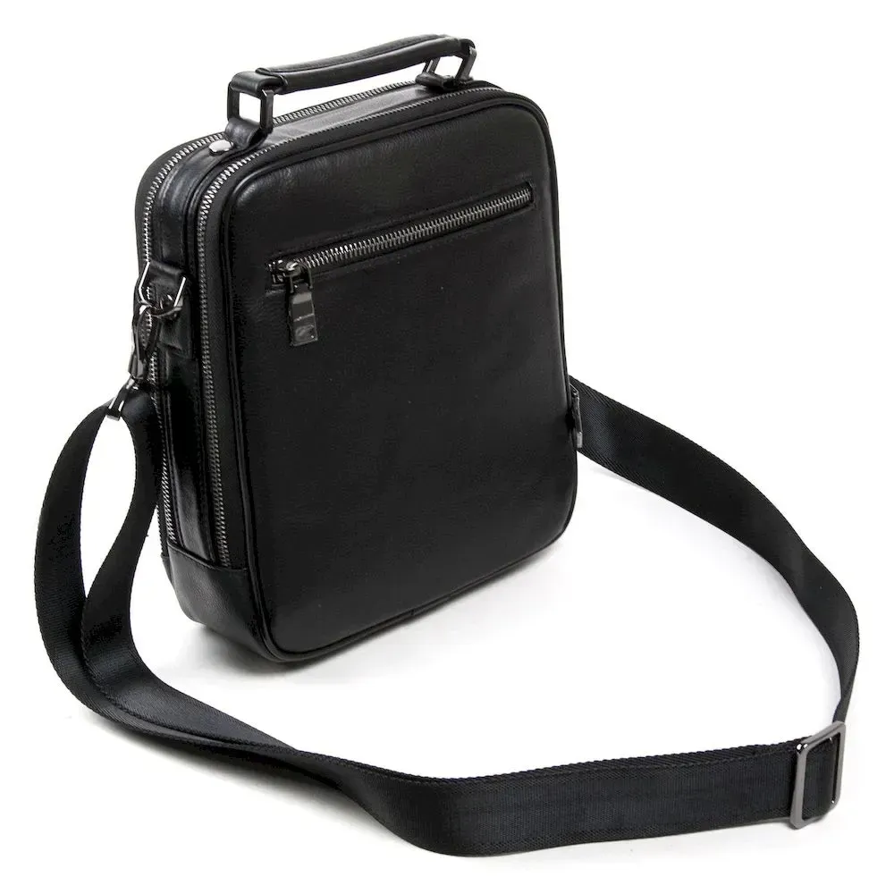 Мужская кожаная каркасная сумка-планшет Bretton. Изготовлена из натуральной мягкой кожи. Два отделения, закрываются на молнию. Внутри есть открытый карман и боковой карман на молнии. На фасаде сумки и на обратной стороне расположены карманы на молнии. Регулируемый плечевой ремень в комплекте.