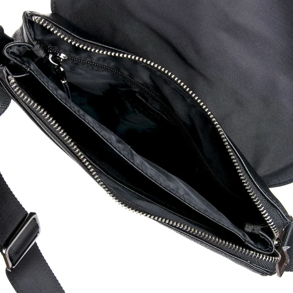 Мужская кожаная сумка-планшет Bretton. Под клапаном дополнительно закрывается на молнию. Внутри есть два отделения, открытый карман и боковой карман на молнии. На фасаде сумки под клапаном находится открытый карман, а на обратной стороне карман на молнии. Регулируемый плечевой ремень. Размер (см.) 22*25*6