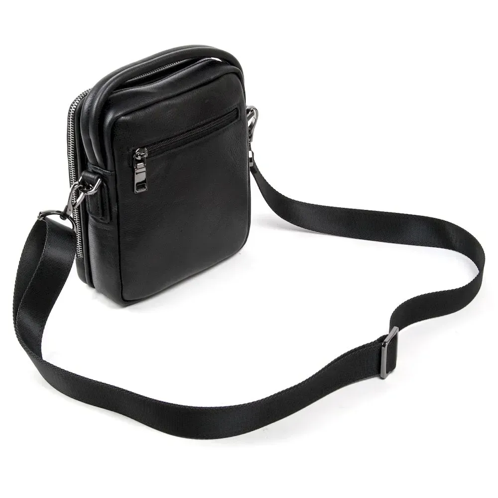 Мужская кожаная сумка-планшет Bretton. Изготовлена из мягкой натуральной кожи. Два отделения, закрываются на молнию. Внутри отделений есть открытый карман и боковой карман на молнии. На фасаде есть кармана на магнитной кнопке, а на обратной стороне сумки карман на молнии. Регулируемый плечевой ремень в комплекте. Размер (см.) 17*20*7