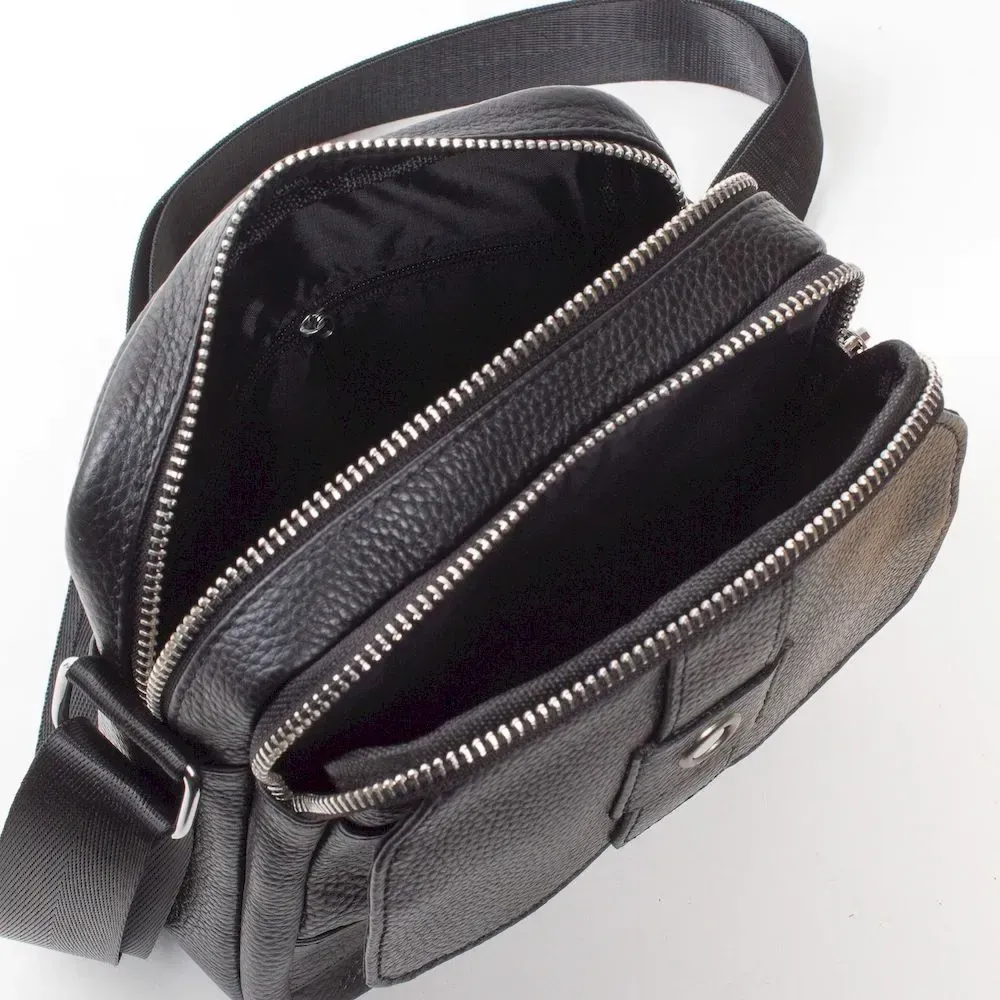 Кожаная мужская сумка-планшет Dr.Bond. Два отделения, закрывются на молнию. Внутри есть боковой карман на молнии. На фасаде находится карман под клапаном, а на обратной стороне расположен карман на молнии. Плечевой ремень регулируется по длине.