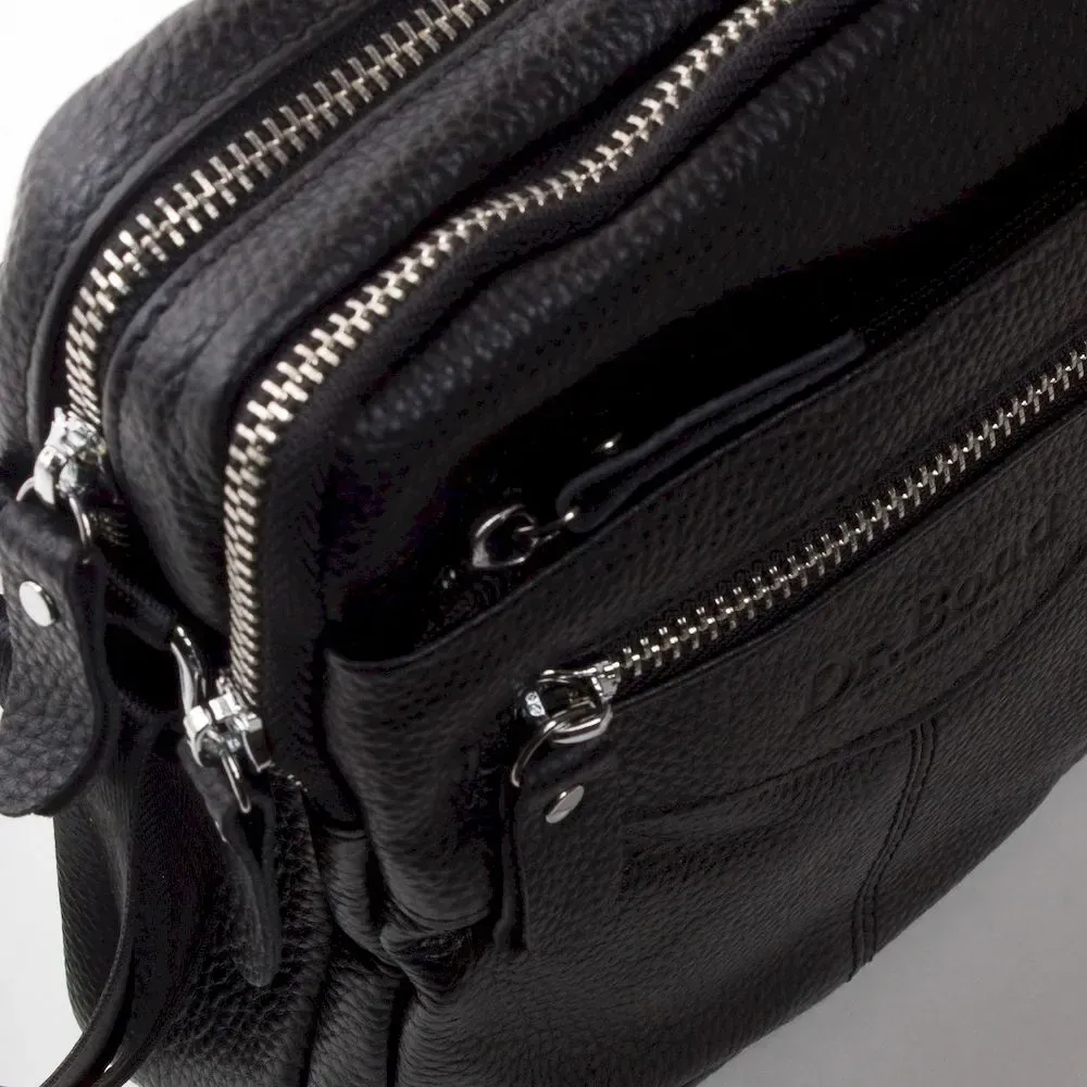 Кожаная мужская сумка-планшет Dr.Bond. Два отделения, закрывются на молнию. Внутри есть боковой карман на молнии. На фасаде и обратной стороне расположены карманы на молнии. Плечевой ремень регулируется по длине.