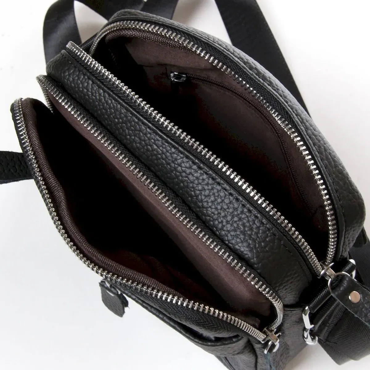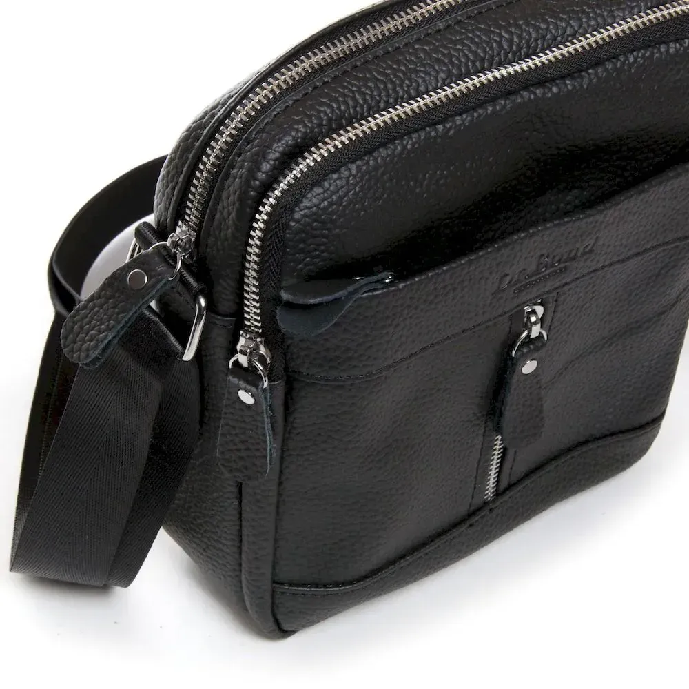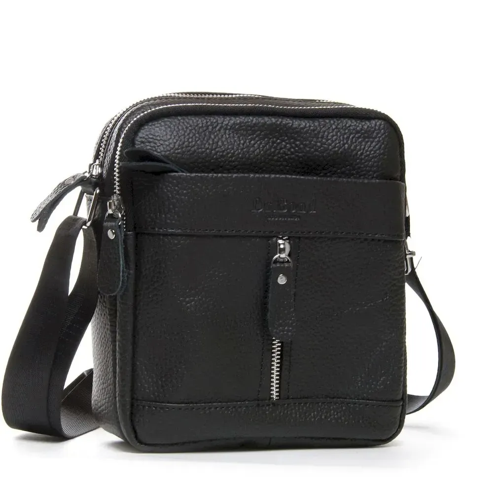 Кожаная мужская сумка-планшет Dr.Bond. Два отделения, закрывются на молнию. Внутри есть боковой карман на молнии. На фасаде и обратной стороне расположены карманы на молнии. Плечевой ремень регулируется по длине.
