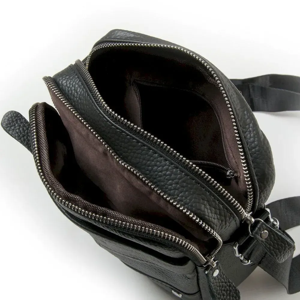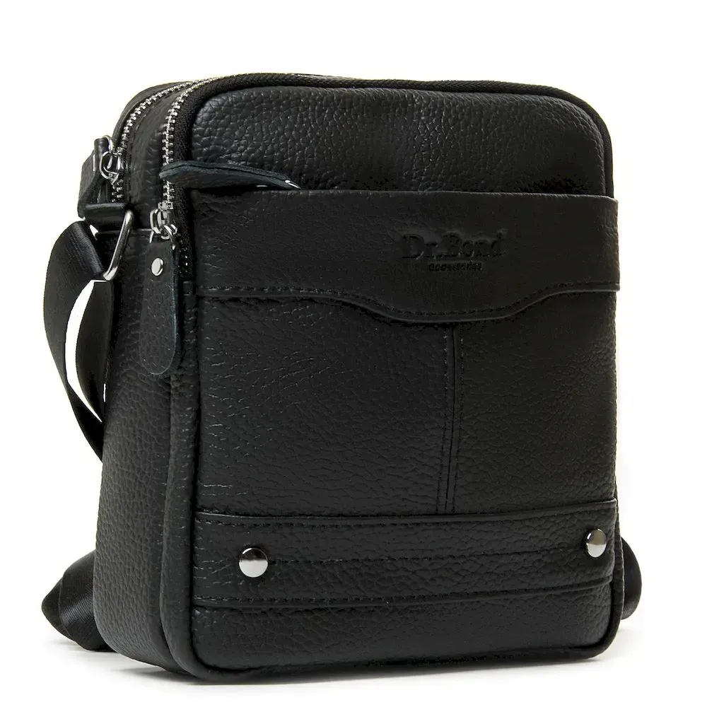 Кожаная мужская сумка-планшет Dr.Bond. Два отделения, закрывются на молнию. Внутри есть боковой карман на молнии. На фасаде и обратной стороне расположены карманы на молнии. Плечевой ремень регулируется по длине.