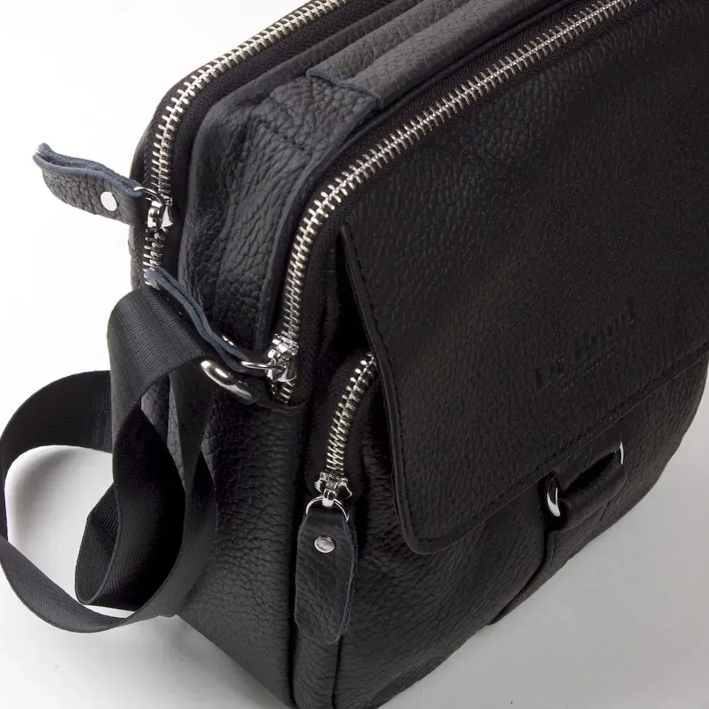 Кожаная мужская сумка-планшет Dr.Bond. Два отделения, закрываются на молнию. Внутри есть боковой карман на молнии. На фасаде под клапаном есть вместительный карман, который дополнительно закрывается на молнию, а на обратной стороне расположен карман на молнии. Плечевой ремень регулируется по длине.