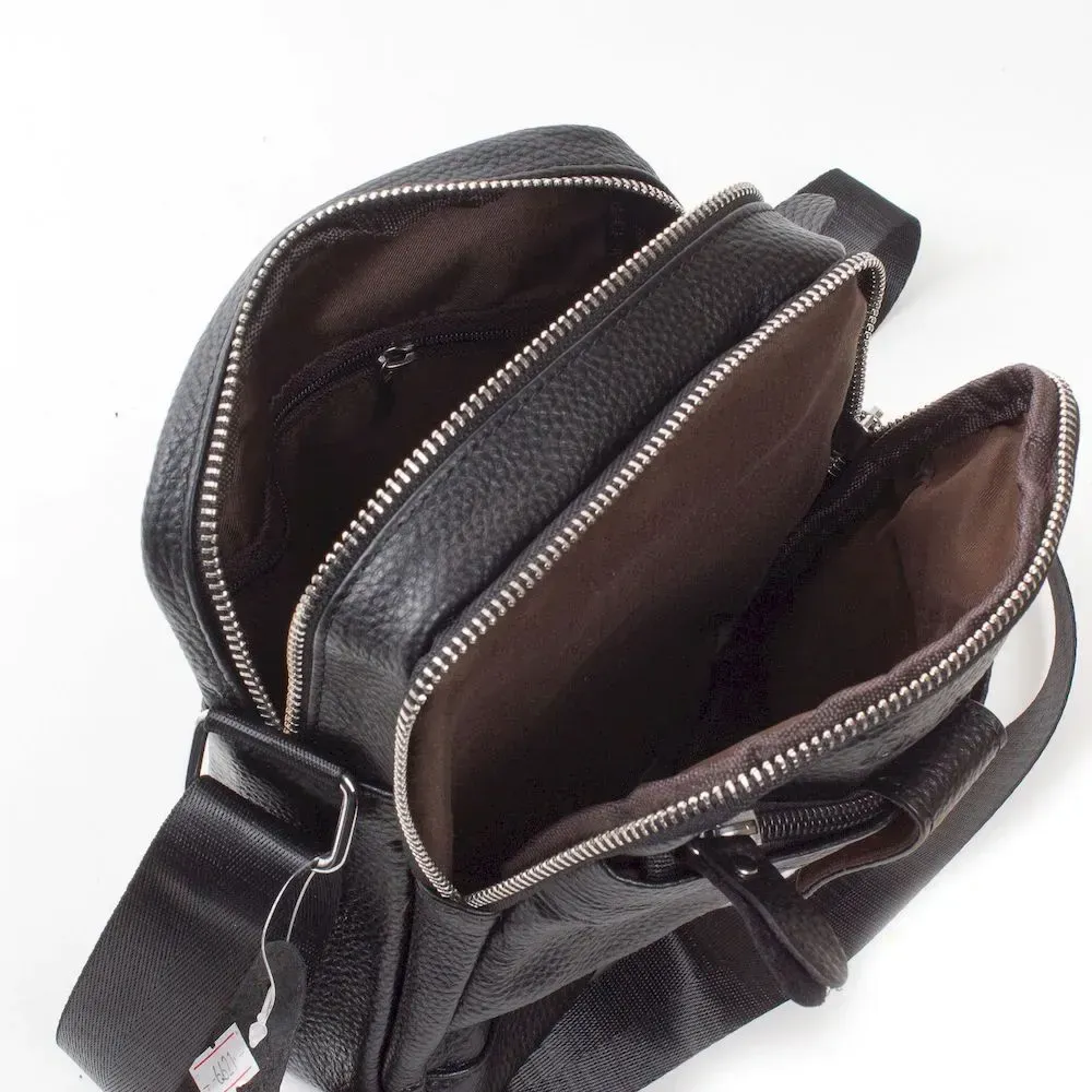 Кожаная мужская сумка-планшет Dr.Bond. Два отделения, закрывются на молнию. Внутри есть боковой карман на молнии. На фасаде и обратной стороне расположены карманы на молнии. Плечевой ремень регулируется по длине.