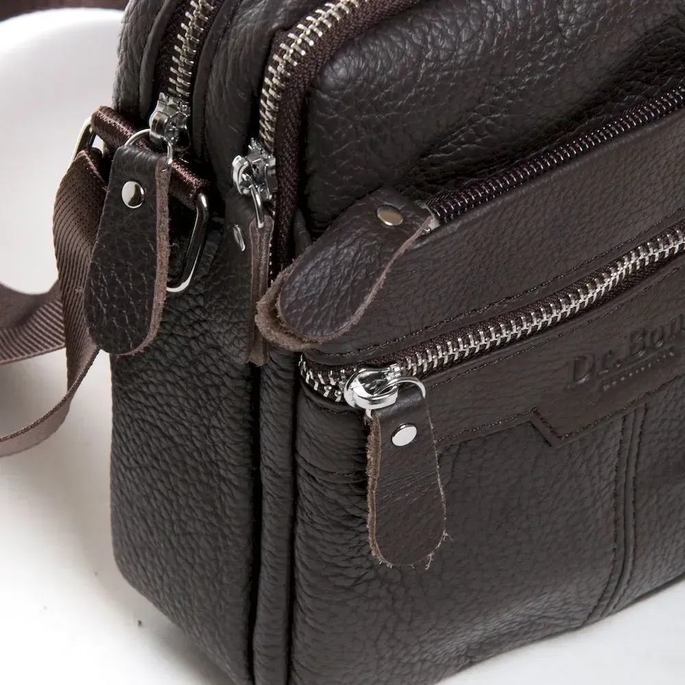 Кожаная мужская сумка-планшет Dr.Bond. Два отделения, закрывются на молнию. Внутри есть боковой карман на молнии. На фасаде и обратной стороне расположены карманы на молнии. Плечевой ремень регулируется по длине.