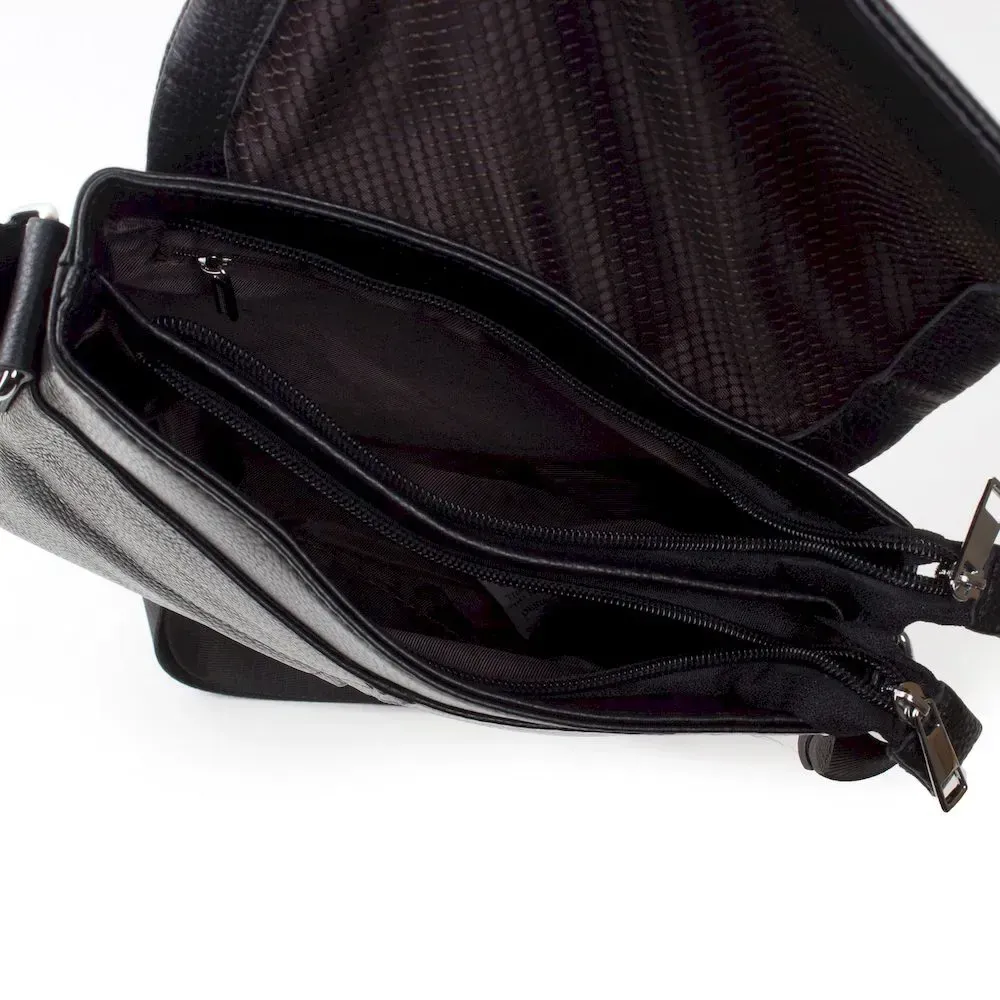 Кожаная мужская сумка-планшет Dr.Bond. Под клапаном дополнительно закрывается на молнию. Два отделения. Внутри есть боковой карман на молнии и открытый двойной карман. На фасаде есть открытый карман под клапаном, а на обратной стороне расположен карман на молнии. Плечевой ремень регулируется по длине.