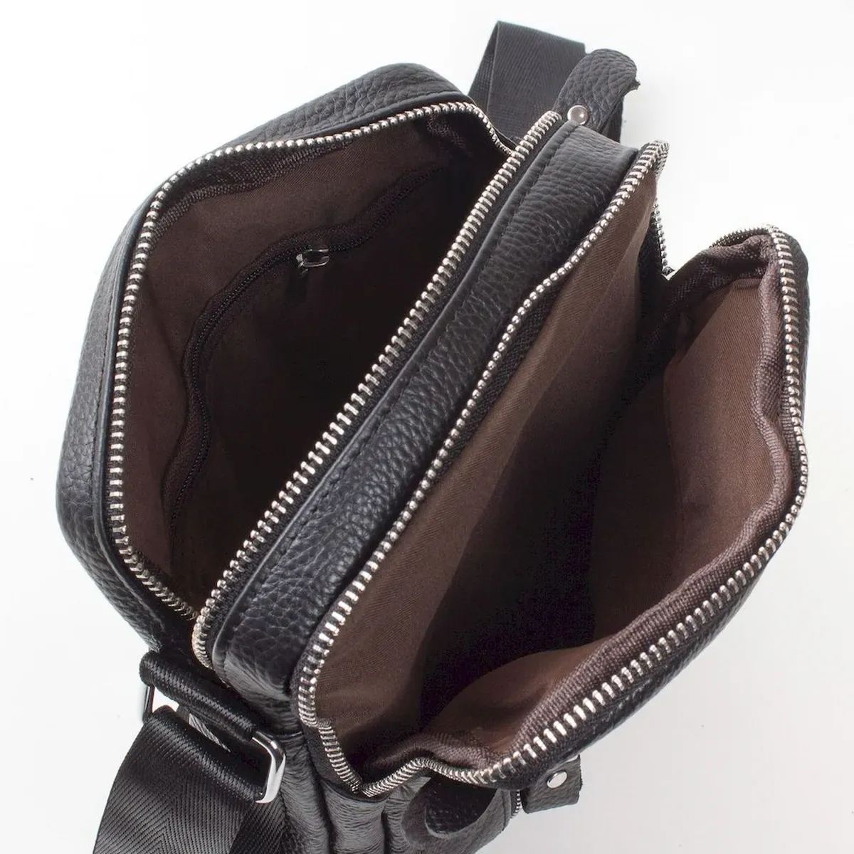 Кожаная мужская сумка-планшет Dr.Bond. Два отделения, закрывются на молнию. Внутри есть боковой карман на молнии. На фасаде и обратной стороне расположены карманы на молнии. Плечевой ремень регулируется по длине.