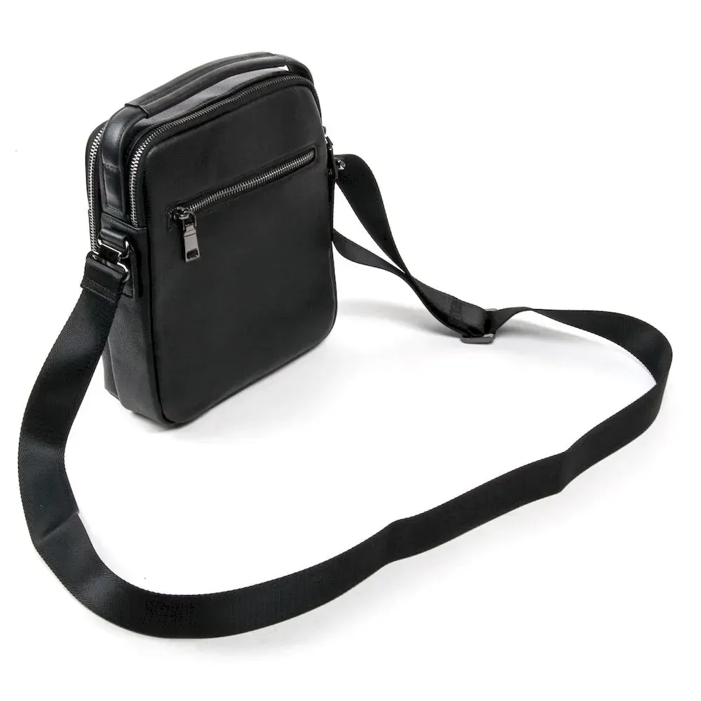 Мужская кожаная сумка-планшет Bretton. Изготовлена из мягкой натуральной кожи. Два отделения, закрываются на молнию. Внутри отделений есть открытый карман и боковой карман на молнии. На фасаде и на обратной стороне сумки находятся карманы на молнии. Регулируемый плечевой ремень. Размер (см.) 20*23*7
