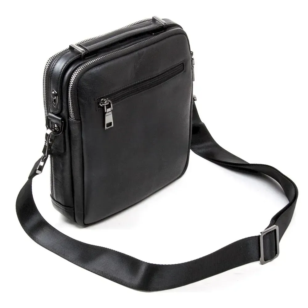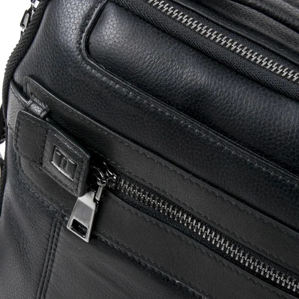 Мужская кожаная сумка-планшет Bretton. Два отделения, закрываются на молнию. Внутри первого отделения есть открытый карман, а во втором отделении находится боковой карман на молнии. На фасаде сумки есть карманы на молнии и на магнитной кнопке, а на обратной стороне один карман на молнии. Регулируемый плечевой ремень в комплекте. Размер (см.) 21*25*8