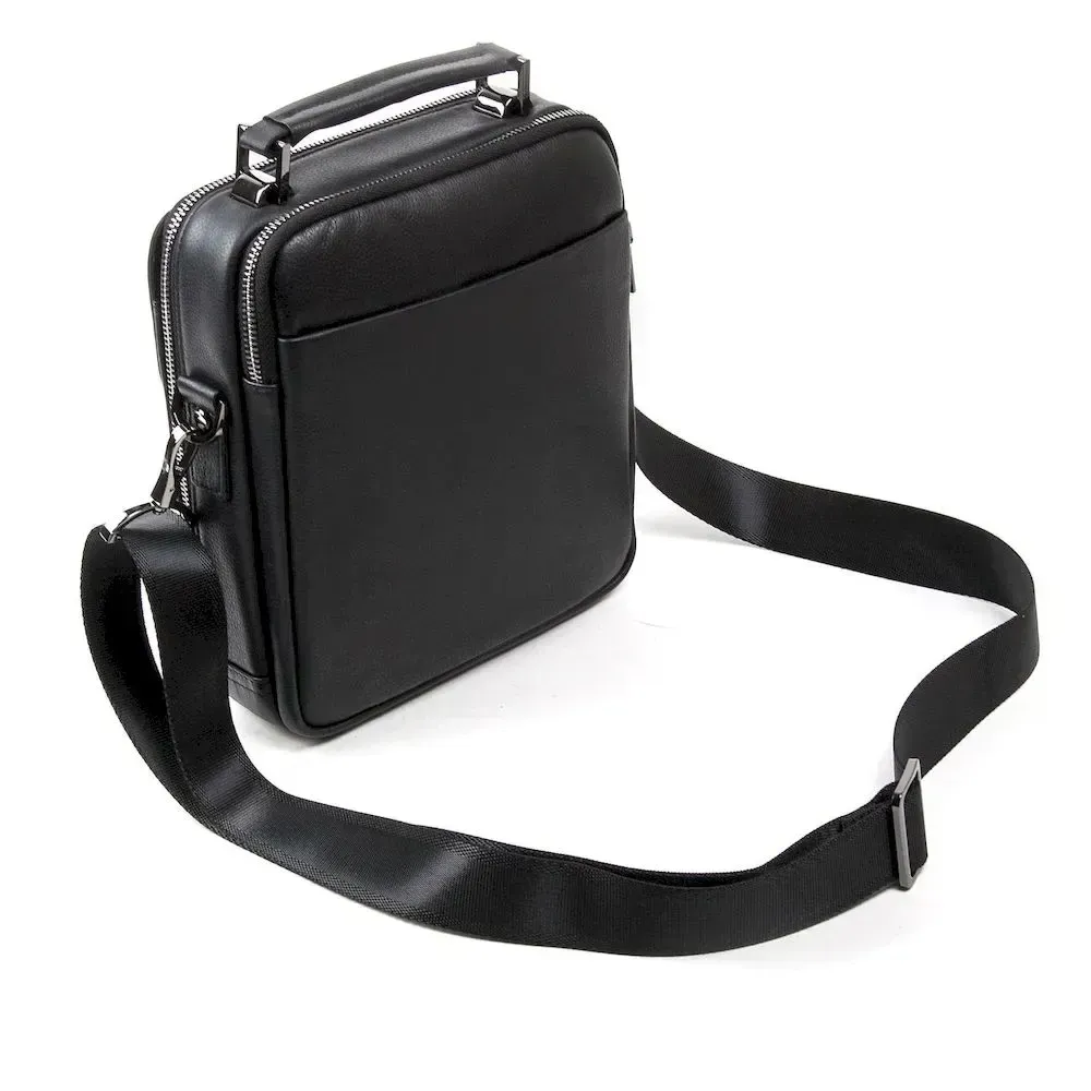 Мужская кожаная сумка-планшет Bretton. Два отделения, закрываются на молнию. Внутри первого отделения есть открытый карман, а во втором отделении находится боковой карман на молнии. На фасаде сумки есть два кармана: один на молнии и второй большой под клапаном. На обратной стороне сумки находится один карман на магнитной кнопке. Регулируемый плечевой ремень в комплекте. Размер (см.) 21*25*8