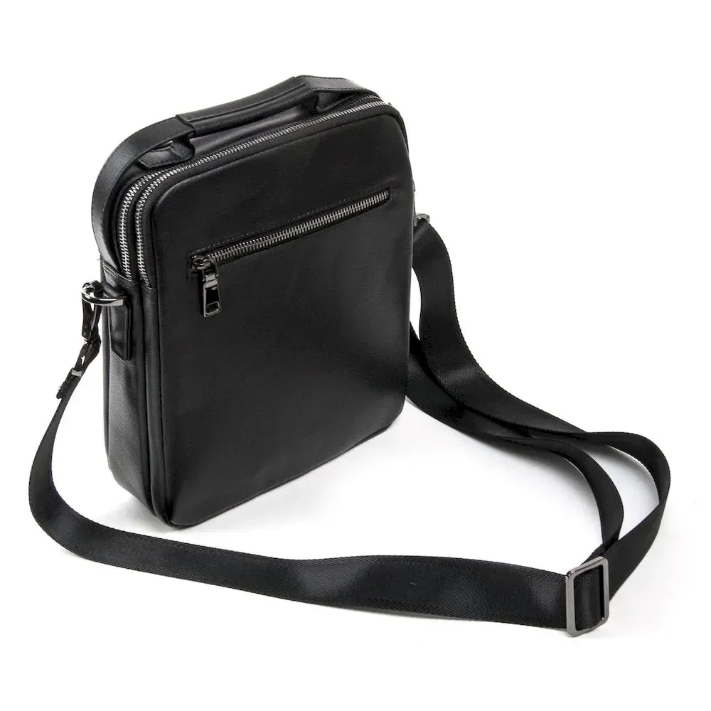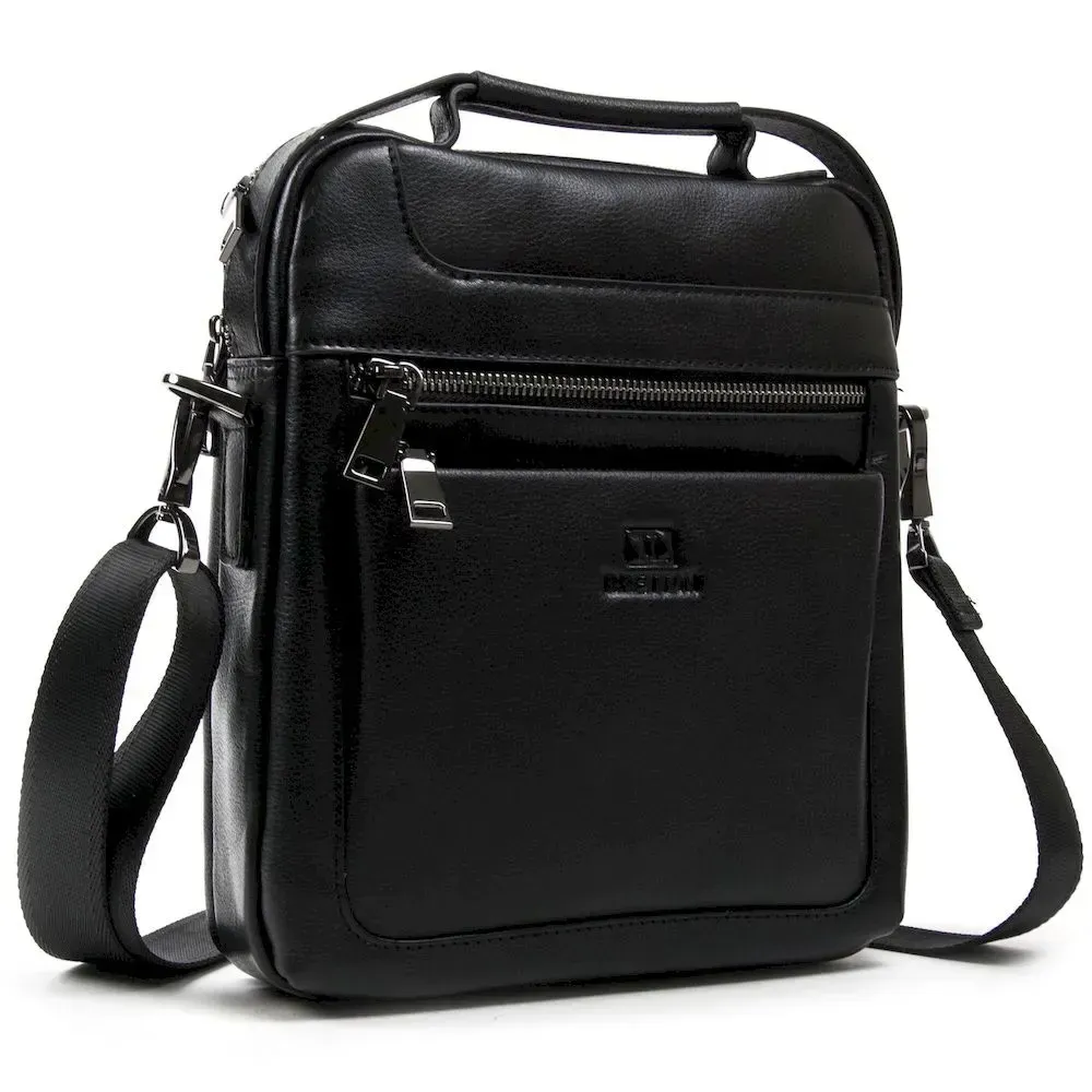 Мужская кожаная сумка-планшет Bretton. Изготовлена из натуральной мягкой кожи. Два отделения, в которых есть открытый карман и боковой карман на молнии. На фасаде сумки есть три кармана: один на магнитной кнопке и два на молнии. На обратной стороне расположен карман на молнии. Регулируемый плечевой ремень в комплекте.
