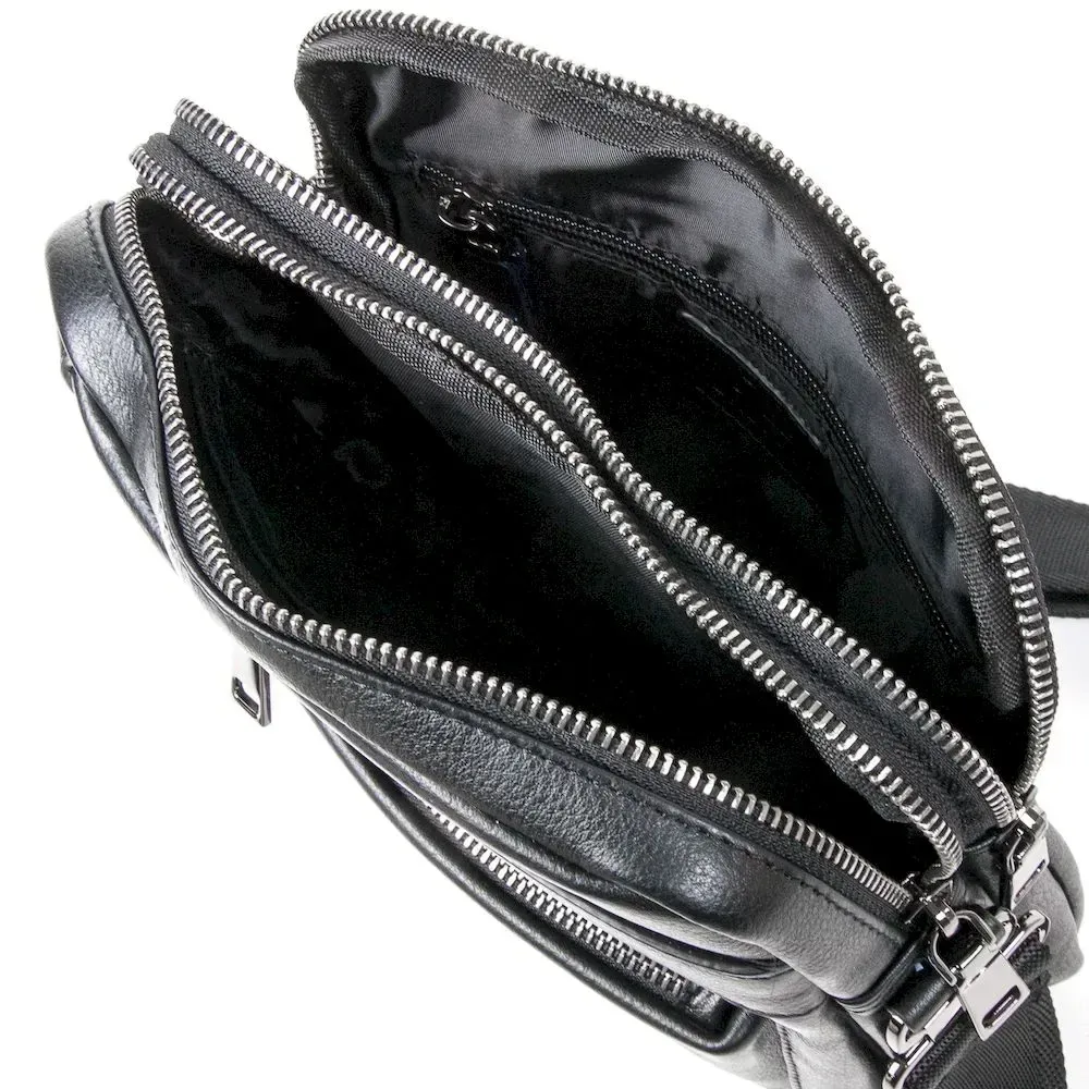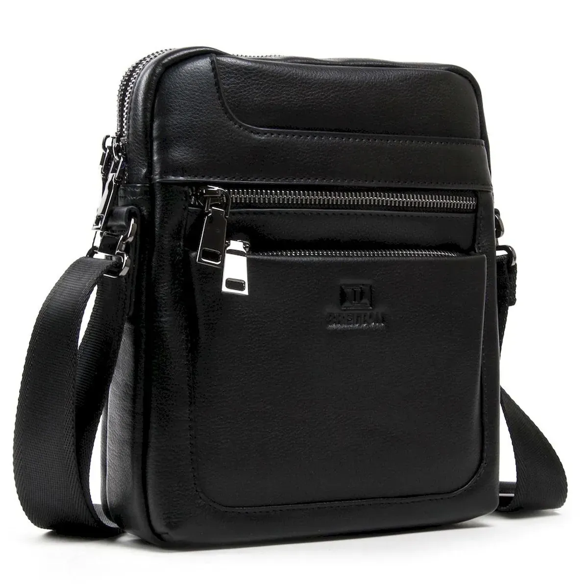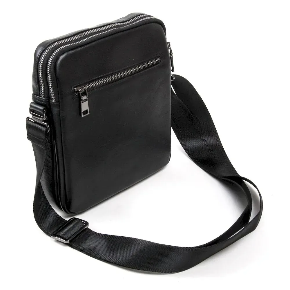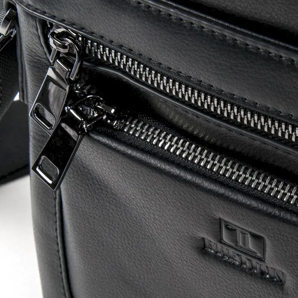 Мужская кожаная сумка-планшет Bretton. Изготовлена из натуральной мягкой кожи. Два отделения, в которых есть открытый карман и боковой карман на молнии. На фасаде сумки есть три кармана: один на магнитной кнопке и два на молнии. На обратной стороне расположен карман на молнии. Регулируемый плечевой ремень.