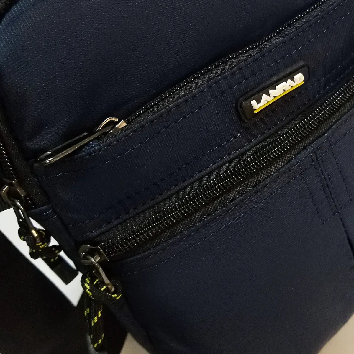 Мужская сумка-планшет Lanpad. Два отделения, закрываются на молнию. Внутри есть карман на молнии и открытый карман. На фасаде сумки находятся 2 карман на молнии и на обратной стороне есть один карман на молнии. Регулируемый плечевой ремень шириной 4см.