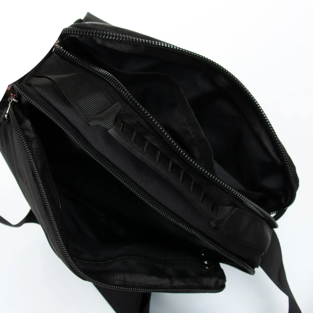 Мужская сумка-планшет Lanpad. Два отделения, закрываются на молнию. Внутри есть карман на молнии и открытый карман. На фасаде сумки находится один карман на молнии и один под клапаном, а на обратной стороне есть один карман на молнии. Регулируемый плечевой ремень шириной 4см.