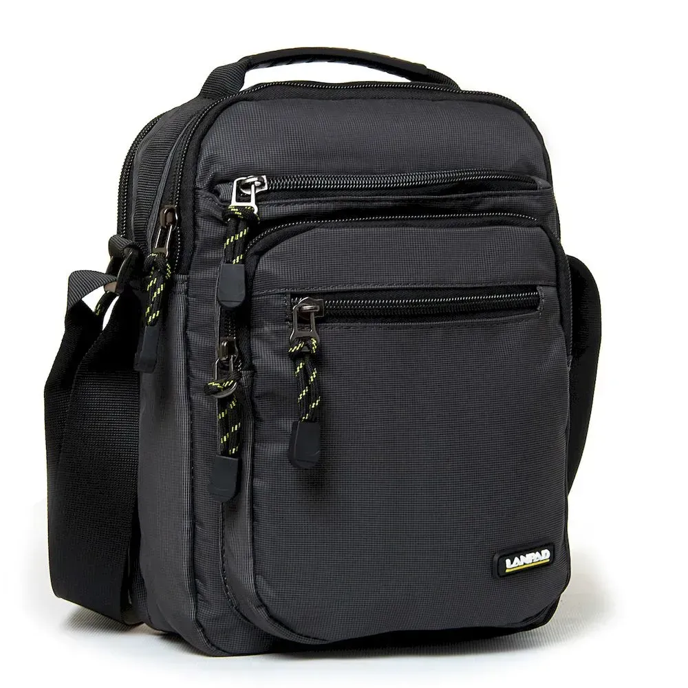 Мужская сумка-планшет Lanpad. Два отделения, закрываются на молнию. Внутри отделений расположен карман на молнии. На фасаде находятся три кармана на молнии. Регулируемый плечевой ремень шириной 4см.