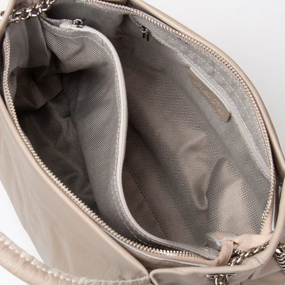 Два отделения, закрываются на молнию. Внутри отделений есть карман на молнии и открытый карман. На фасаде и на обратной стороне расположены вместительные карманы на молнии.