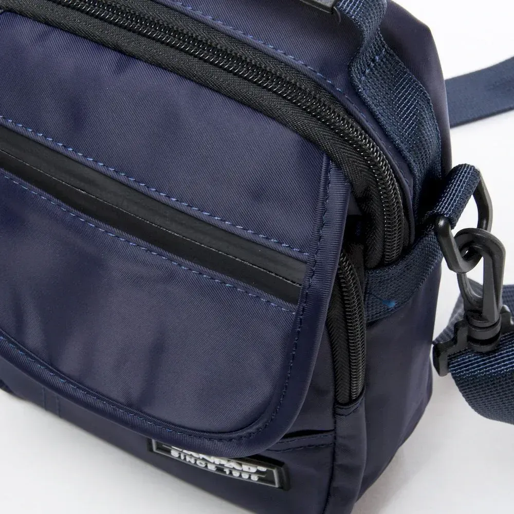 Мужская сумка Lanpad. Одно отделение, закрывается на молнию. Внутри отделения есть карман на молнии и открытый карман. На фасаде расположены карманы на молнии. На обратной стороне есть крепление для ношения на поясном ремне. Регулируемый плечевой ремень, шириной 2,5см.