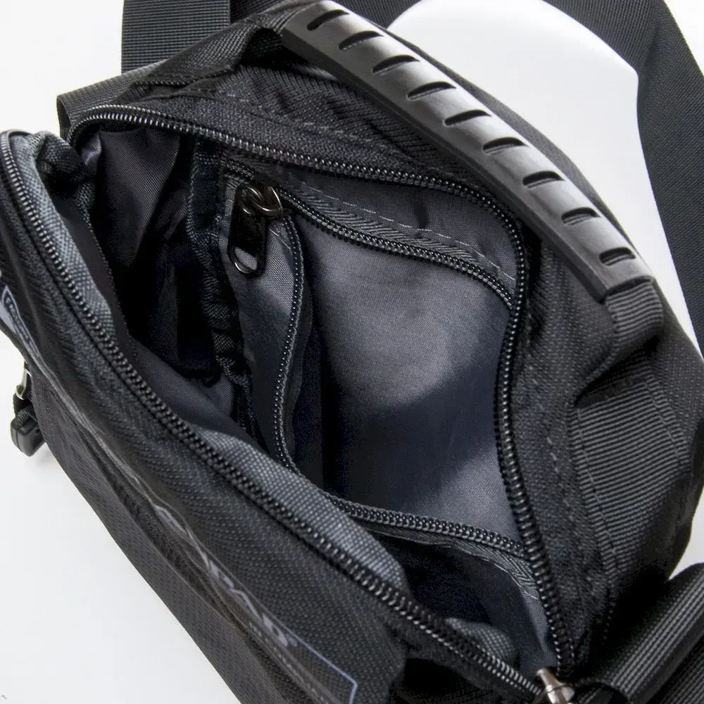Мужская сумка Lanpad. Одно отделение, закрывается на молнию. Внутри отделения расположен карман на молнии и открытый карман. На фасаде находится большой карман на молнии и карман-отделение под клапаном на застежке-липучке. На обратной стороне есть карман на молнии. Регулируемый плечевой ремень.