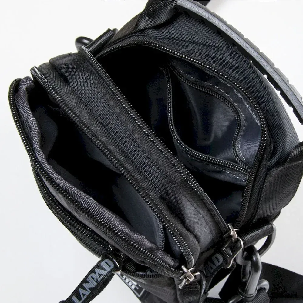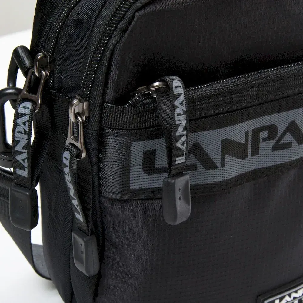 Мужская сумка Lanpad. Два отделения, закрываются на молнию. Внутри отделения есть карман на молнии и открытый карман. На фасаде находится карман на молнии. На обратной стороне есть крепление для ношения сумки на поясе. Регулируемый плечевой ремень в комплекте.