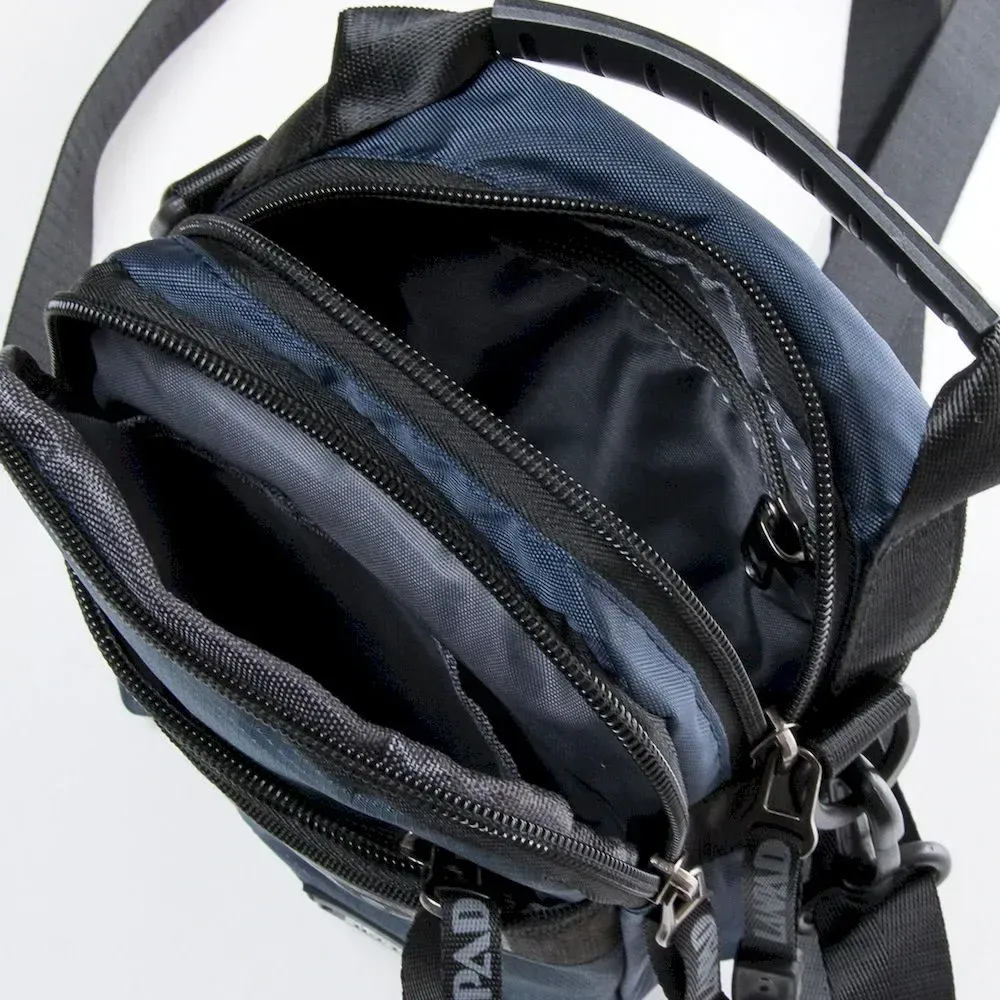 Мужская сумка Lanpad. Два отделения, закрываются на молнию. Внутри отделения есть карман на молнии и открытый карман. На фасаде находится карман на молнии. На обратной стороне есть крепление для ношения сумки на поясе. Регулируемый плечевой ремень в комплекте.