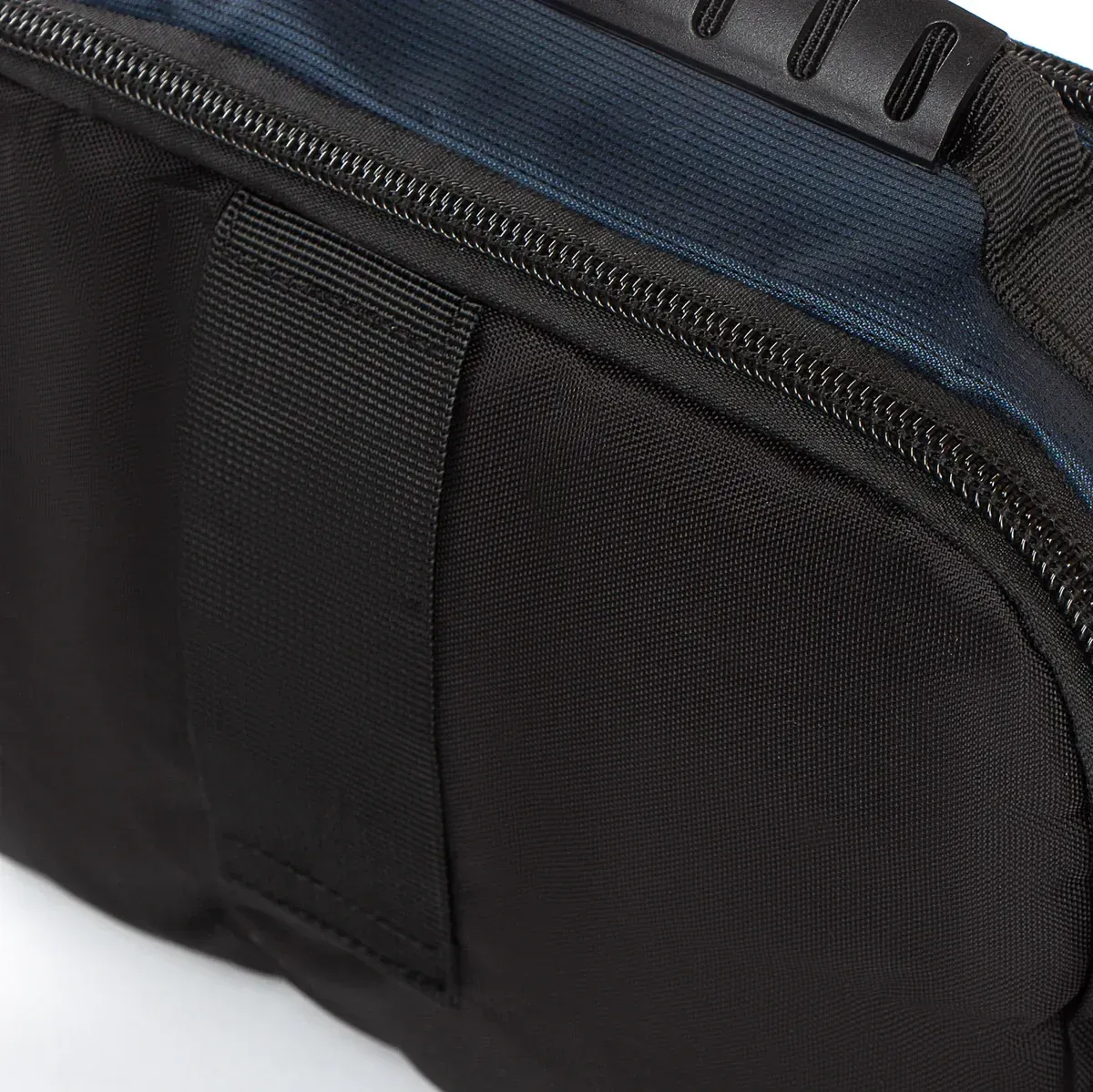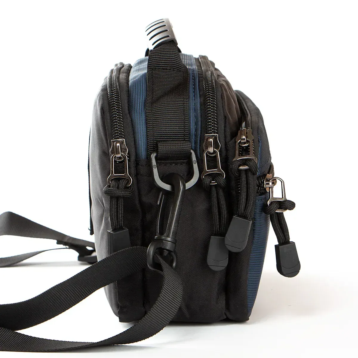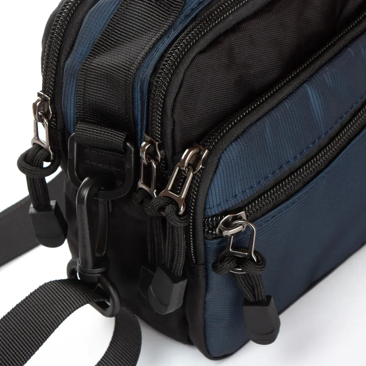 Мужская горизонтальная сумка Lanpad. Два отделения, закрываются на молнию. Внутри отделения есть карман на молнии. На фасаде находятся два кармана на молнии. На обратной стороне есть крепление для ношения сумки на поясе.