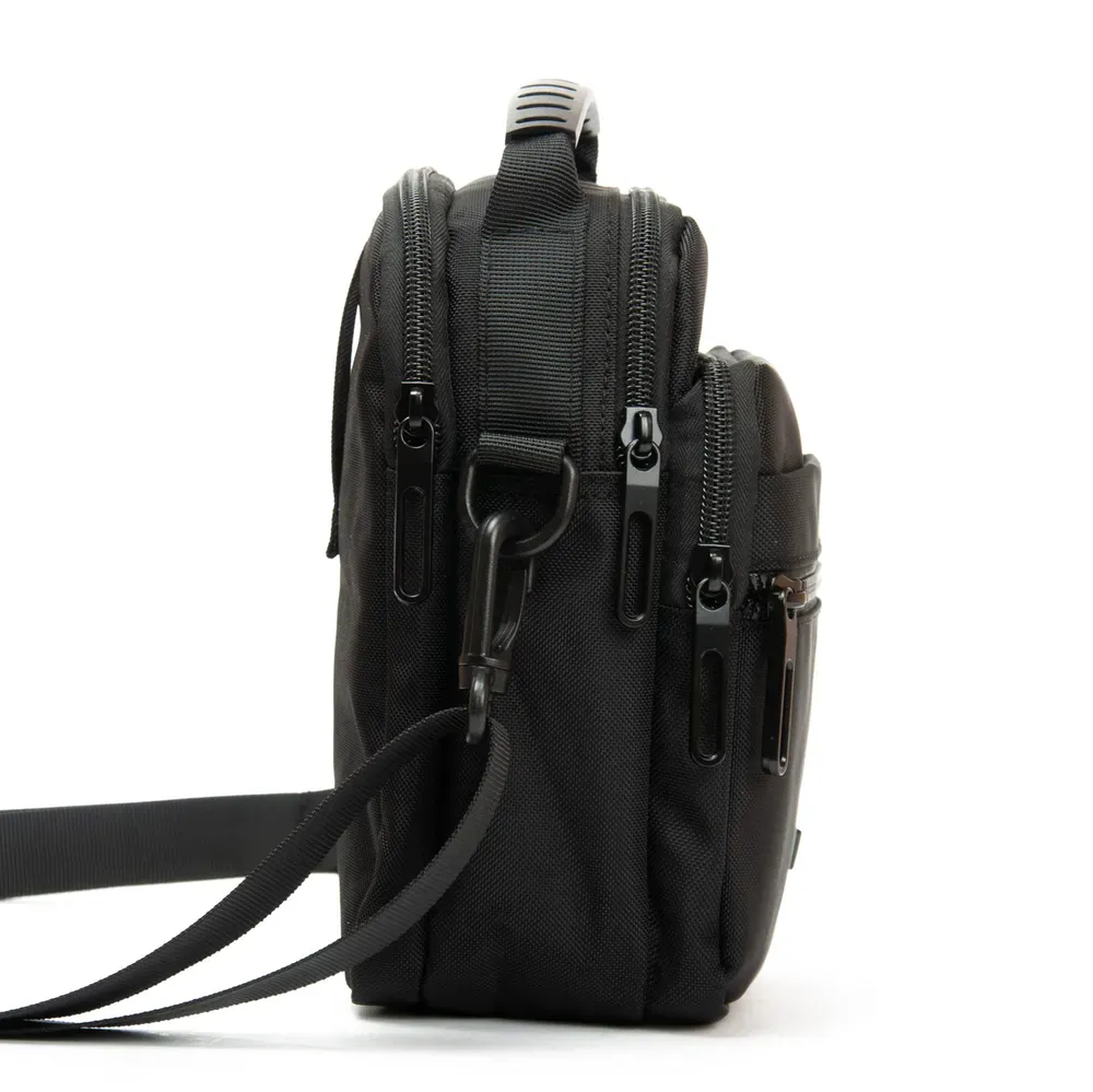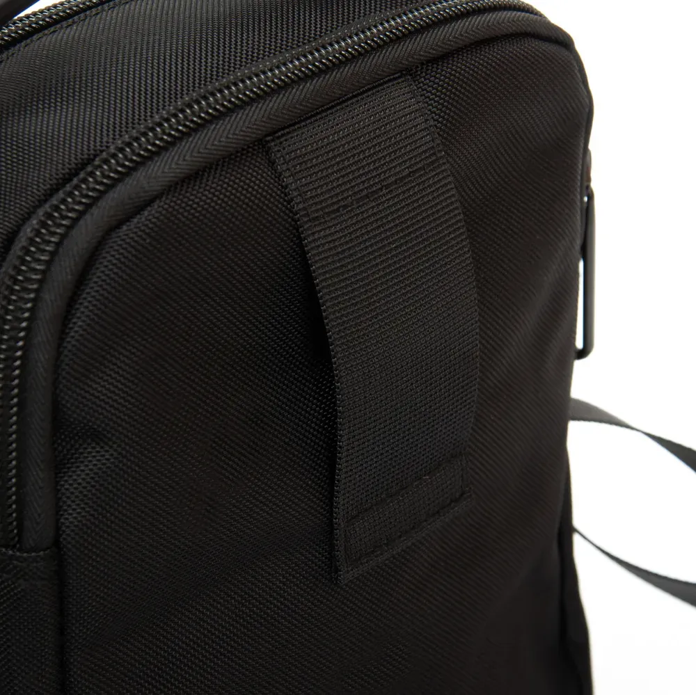 Мужская сумка Lanpad. Два отделения, закрываются на молнию. Внутри отделений расположен карман на молнии и открытый карман. На фасаде находятся два вместительных кармана на молнии. На обратной стороне есть крепление на пояс.