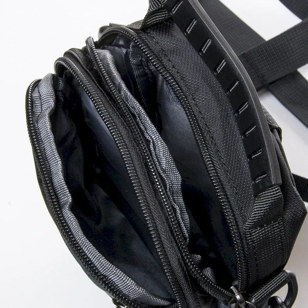 Мужская сумка Lanpad. Два отделения, закрываются на молнию. Внутри отделений есть карман на молнии и открытый карман. На фасаде расположен кармана на застежке-липучке. На обратной стороне есть крепление на пояс. К комплекте регулируемый плечевой ремень.