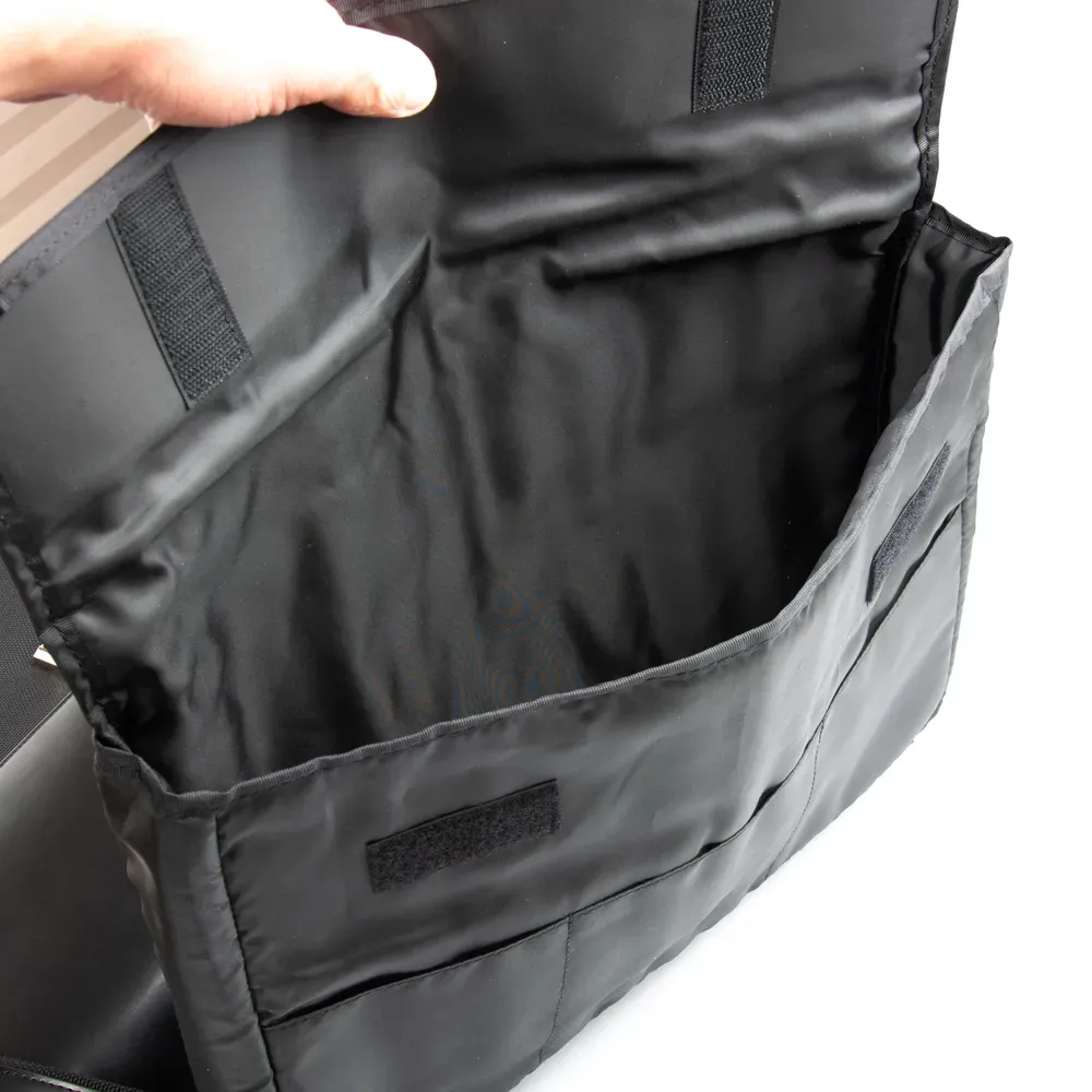 В комплекте регулируемый плечевой ремень и папка для бумаг формата А4.