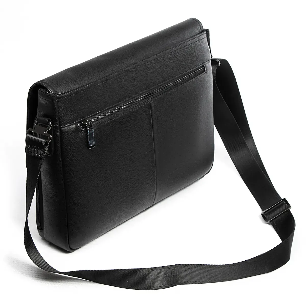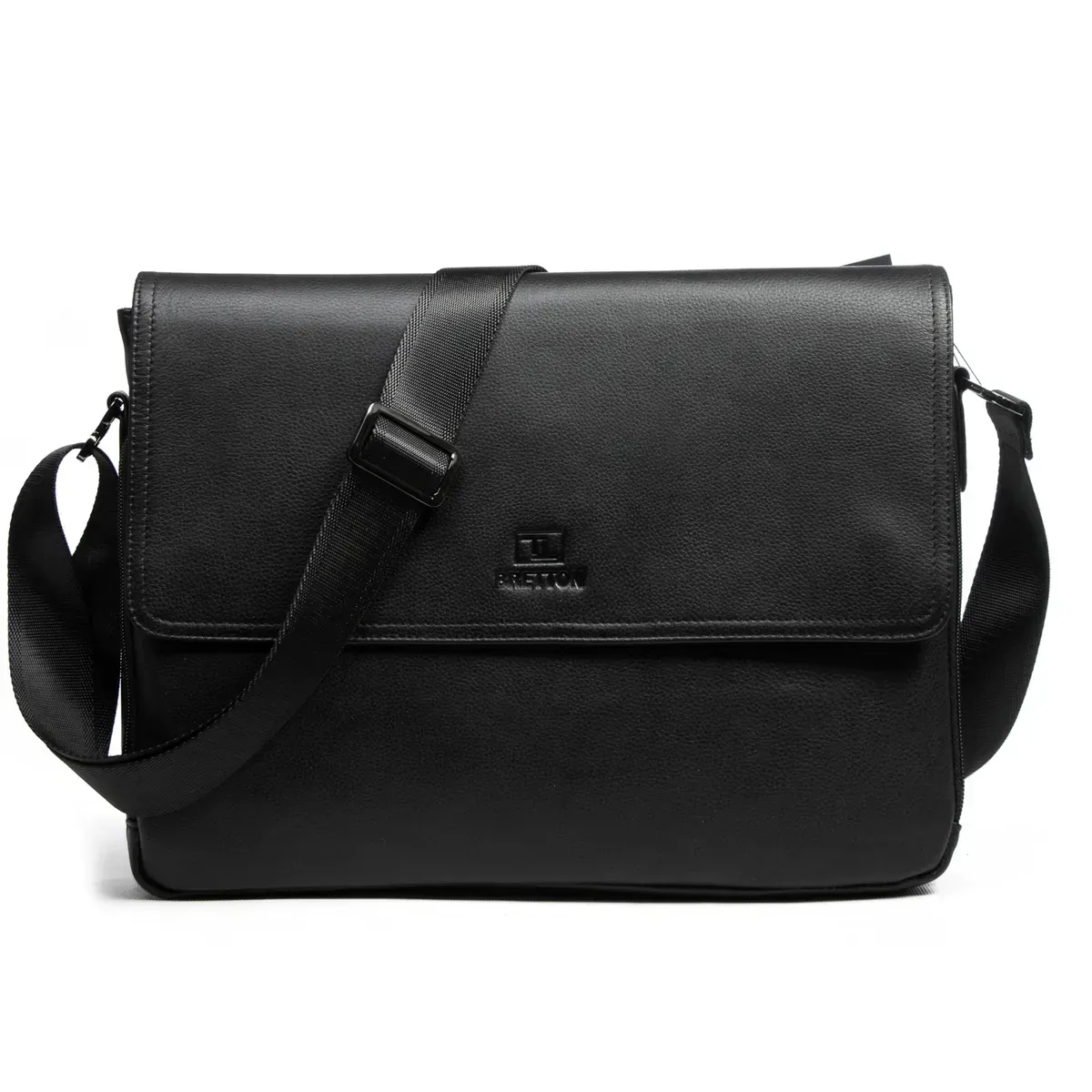 Мужской кожаный портфель Bretton. Под клапаном дополнительно закрывается на молнию. Одно основное отделение с боковым открытым карманом и карманом на молнии. На фасаде находится большой карман на молнии. На обратной стороне есть карман на магнитной кнопке для бумаг А4 и карман на молнии. Регулируемый плечевой ремень шириной 4см.