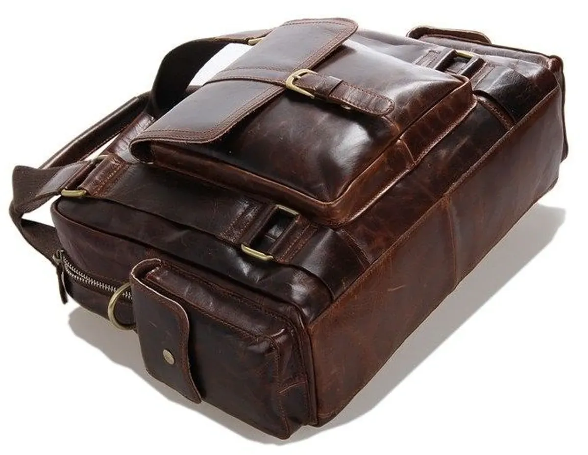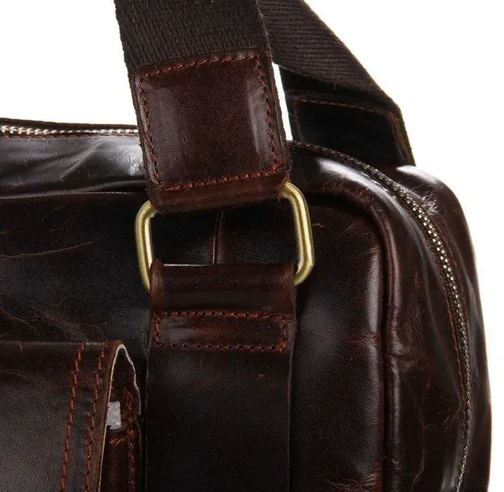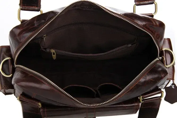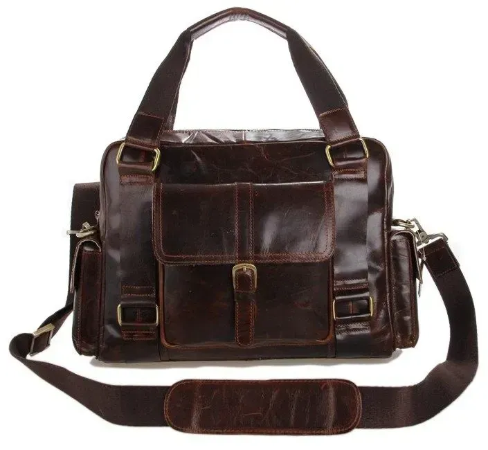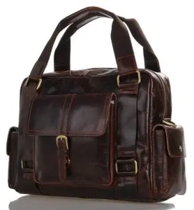 Элитная кожаная сумка для мужчин, которые ценят действительно качественные и удобные аксессуары. Кожа, из которой изготовлено изделие, имеет фактуру под старину. Цвет фурнитуры: латунь. Благодаря высокому качеству кожи, прочной нити, которой прошита сумка и надежной фурнитуре, служить такая сумка будет очень долго, и при этом будет выглядеть презентабельно. Аксессуар упакован в текстильный пылезащитный чехол белого цвета.