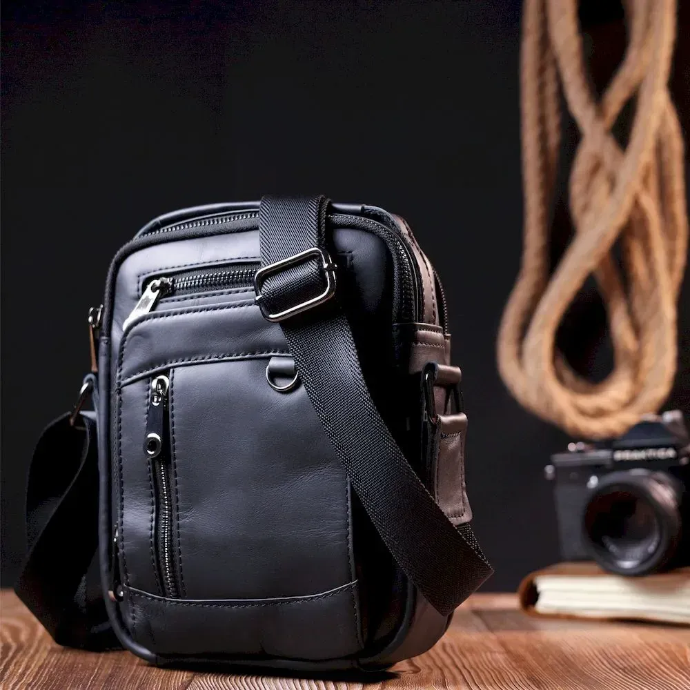 Функциональная мужская сумка компактного размера из натуральной кожи. В сумку с легкостью поместятся все самые необходимые вещи. С такой сумкой будет удобно ходить на работу или встречи. Дополнено изделие качественной фурнитурой. Сумка станет прекрасным подарком для близкого человека.