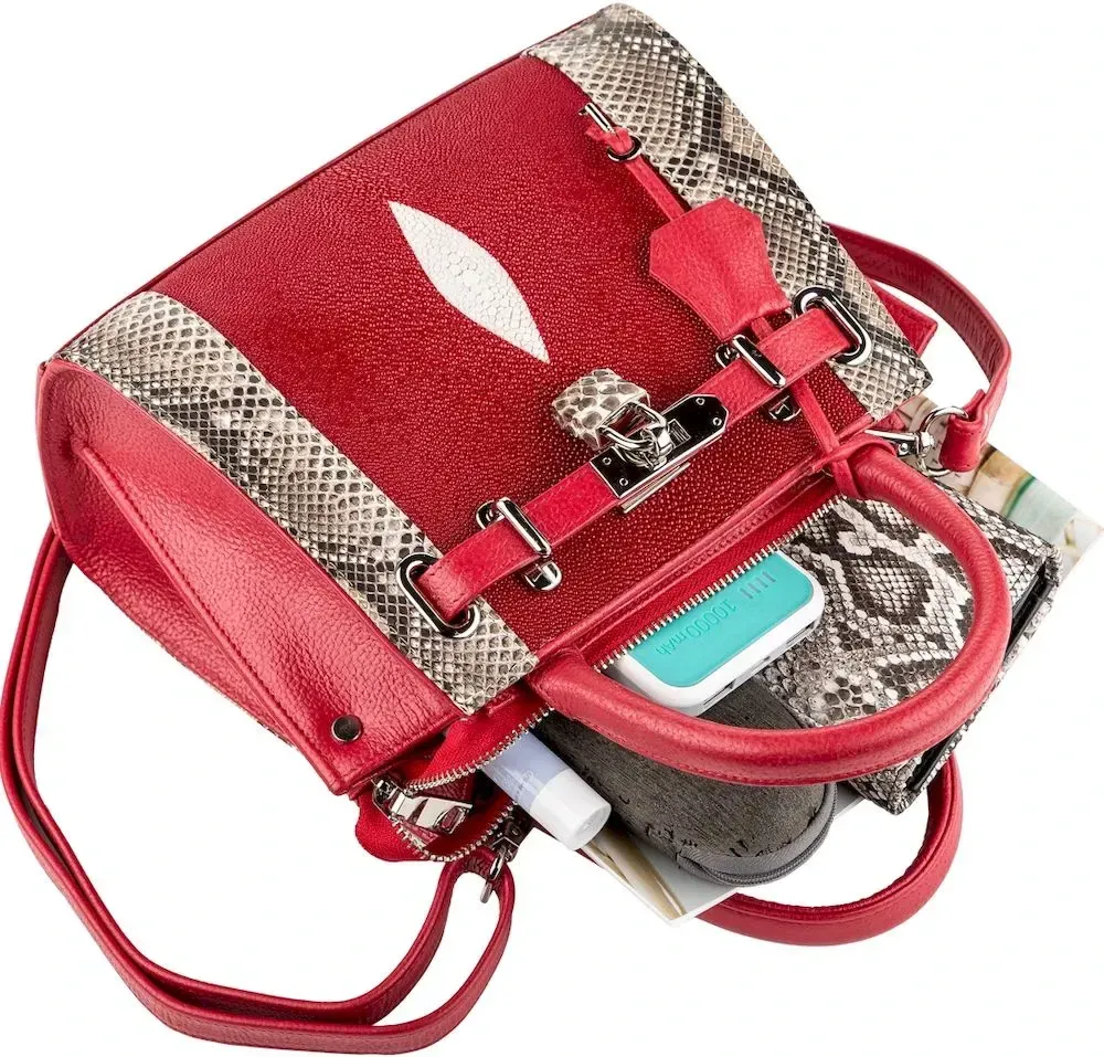 Сумка STINGRAY LEATHER 18221 из натуральной кожи морского ската Красная