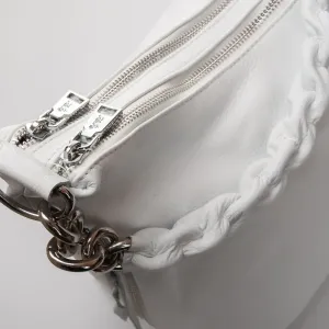 Женская сумочка. Двойное отделение (разделенное карманом-перегородкой на молнии) под клапаном дополнительно закрывается на молнию. На фасаде под клапаном есть открытый карман. В комплекте сьемная ручка, регулируемый плечевой ремень и широкий ремень.