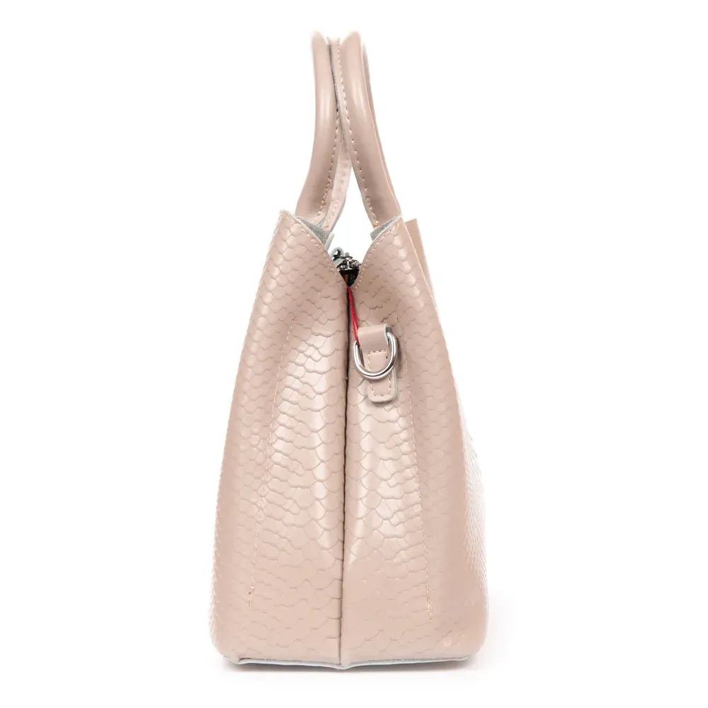 Женская сумочка Fashion. Три отделения: боковые закрываются на магнитные кнопки, а центральное на молнию. Внутри есть боковой карман на молнии и открытый карман. В комплекте регулируемый плечевой ремень и широкий ремень.