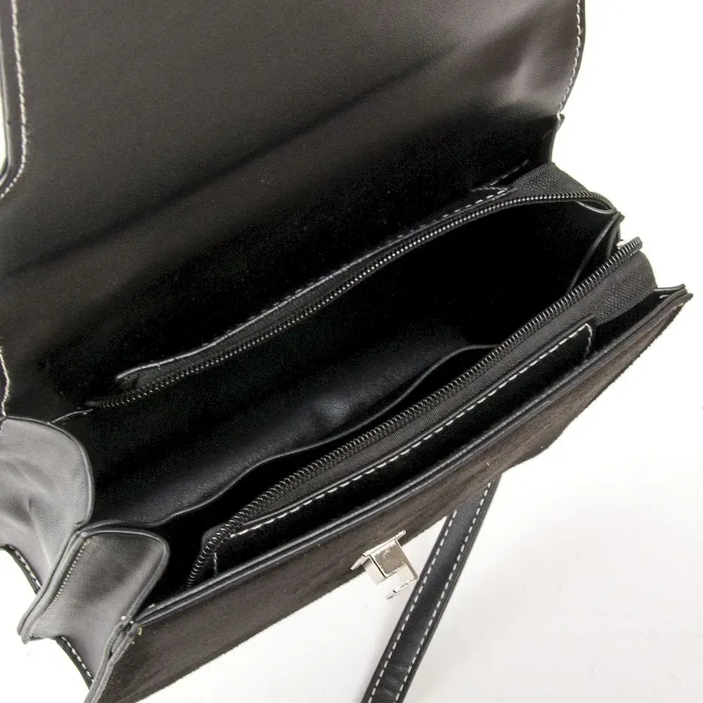 Женская сумочка-клатч. Фасад и обратная сторона выполнены из искусственной замши. Двойное отделение, под клапаном дополнительно закрывается на молнию. В комплекте регулируемый плечевой ремень.