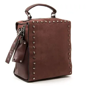 Женская сумка-рюкзак. Можно носить как рюкзак или как сумку на плечевом ремне. Фасад и обратная сторона выполнены из искусственной замши. Одно отделение, закрывается на молнию. На обратной стороне есть один карман на молнии. На торцах сумки находятся два открытых кармана.